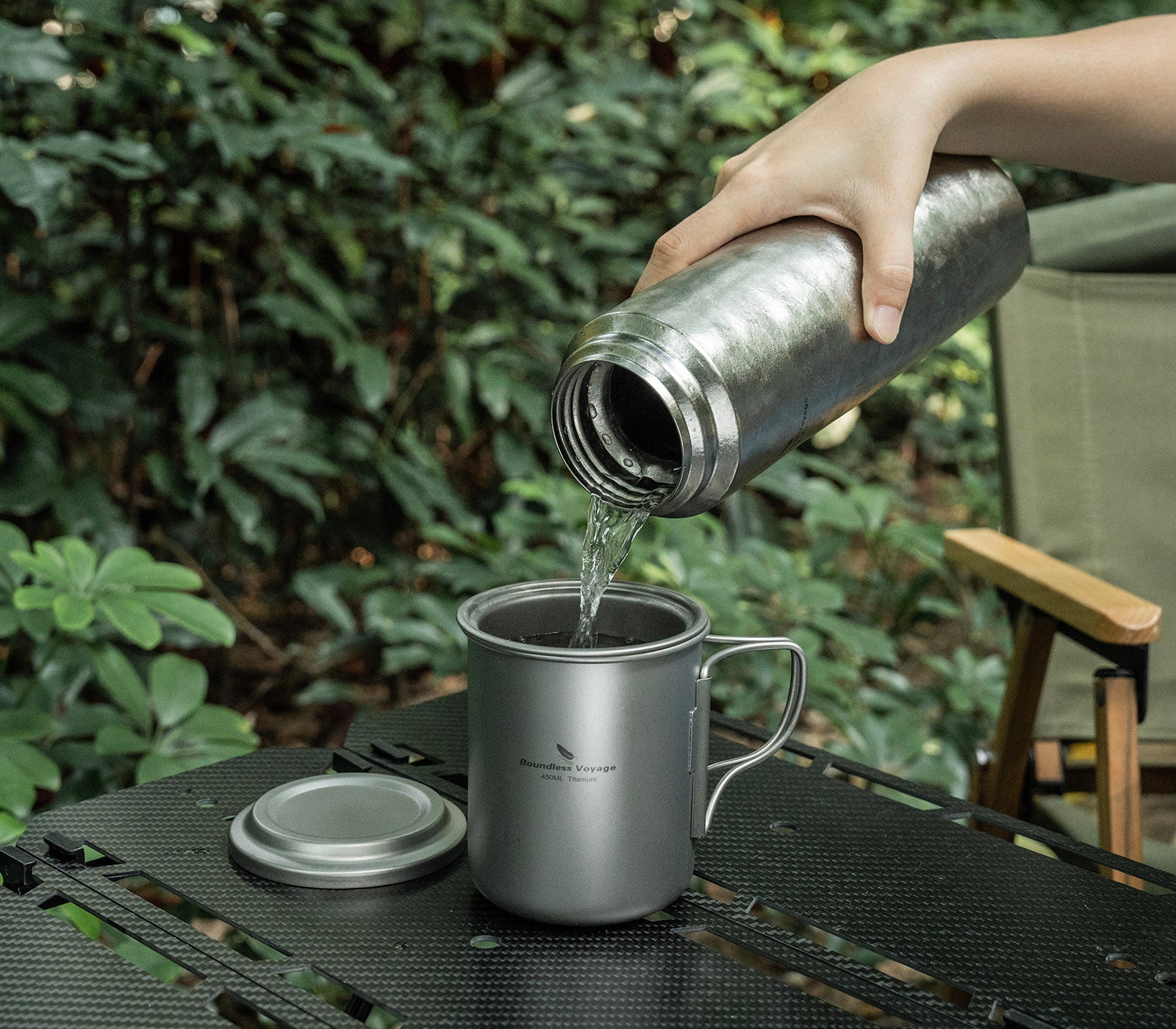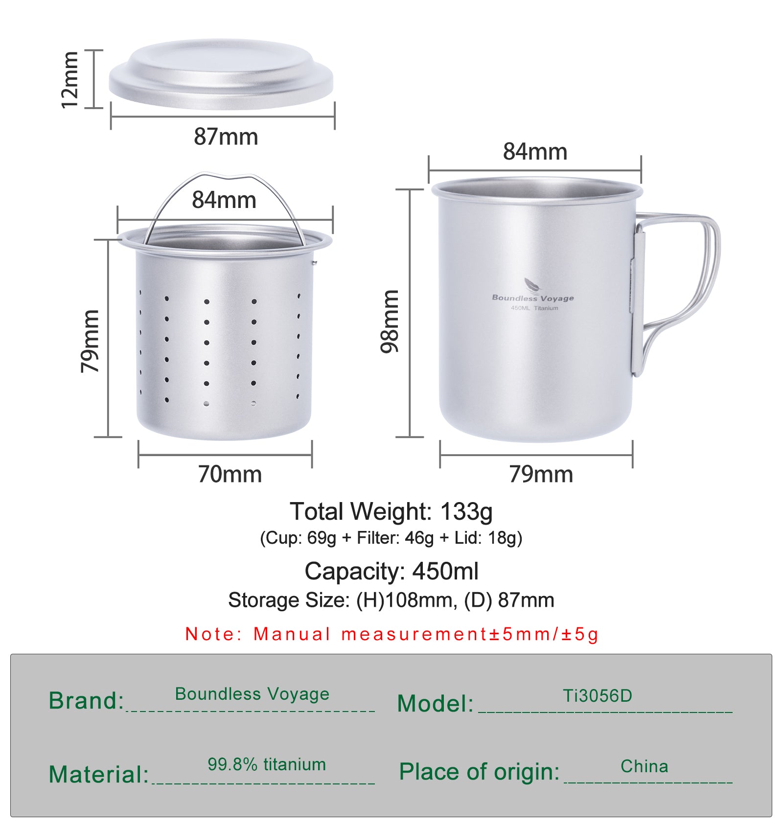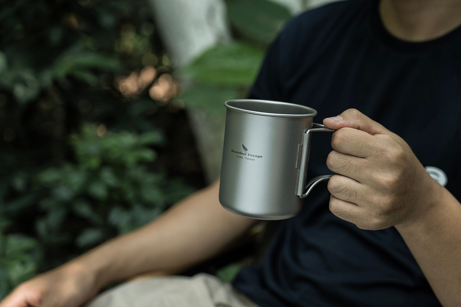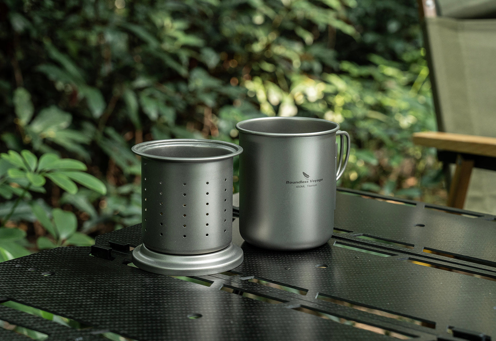 Boundless Voyage 450ml Titanium Cup with Filter Folding Handles Outdoor Camping Ti Tea Coffee Mug 15.2 fl oz Portable Lightweight Tea Maker Can Be Heated