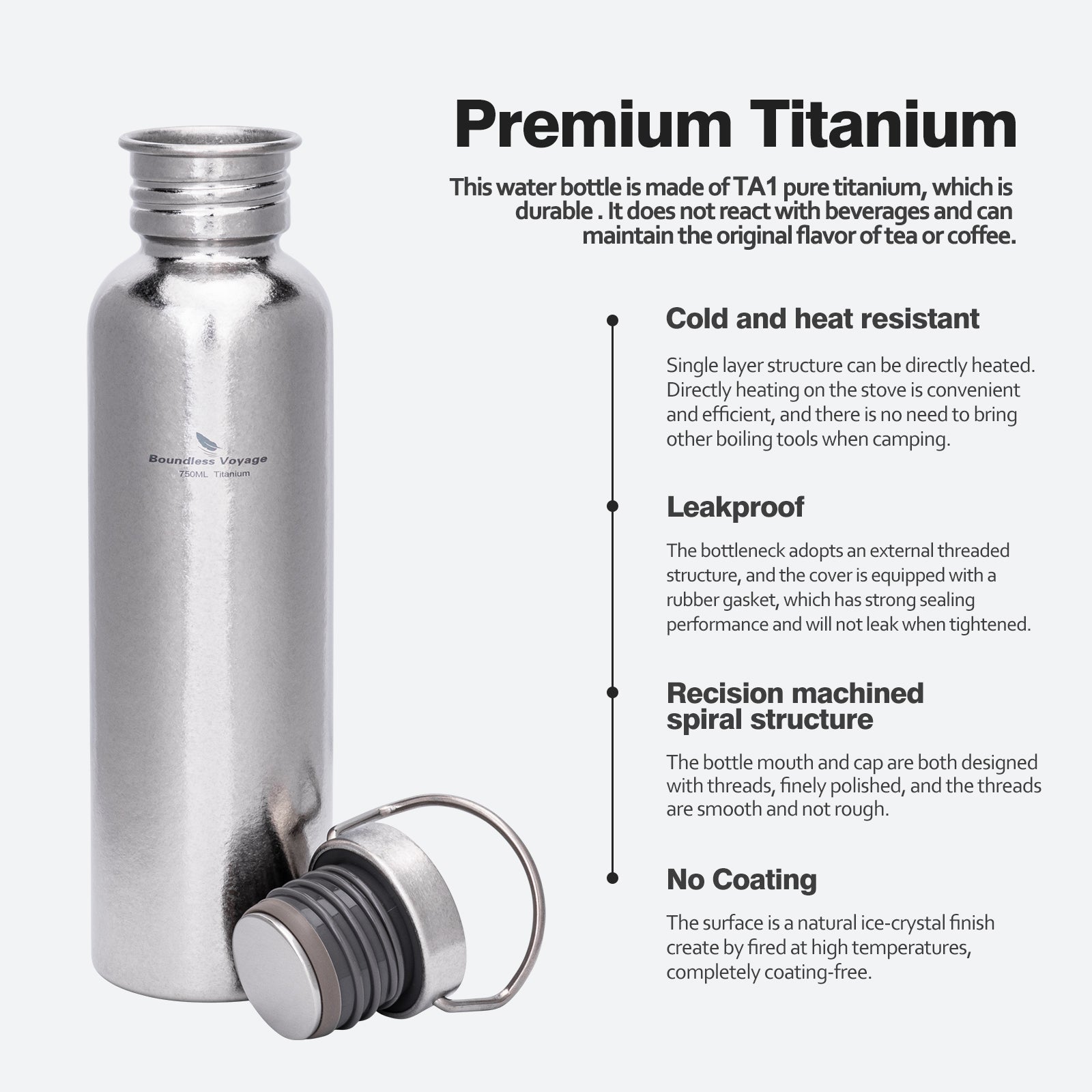 Boundless Voyage 750ml Crystal Finish Titanium Water Bottle with Lid – Wide Mouth, Ultralight, Leak-Proof & Durable for Camping, Hiking & Travel