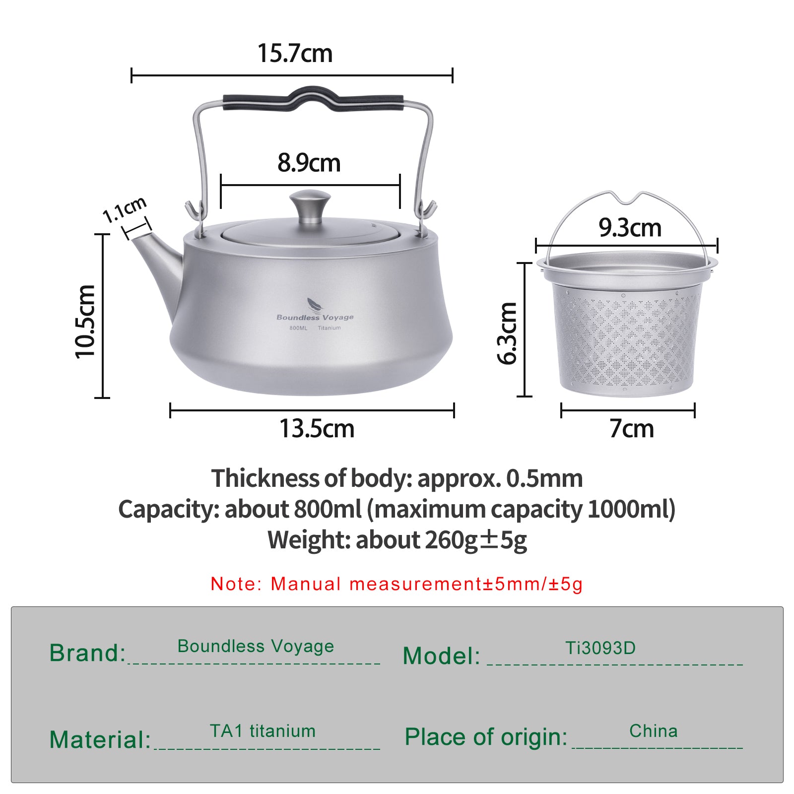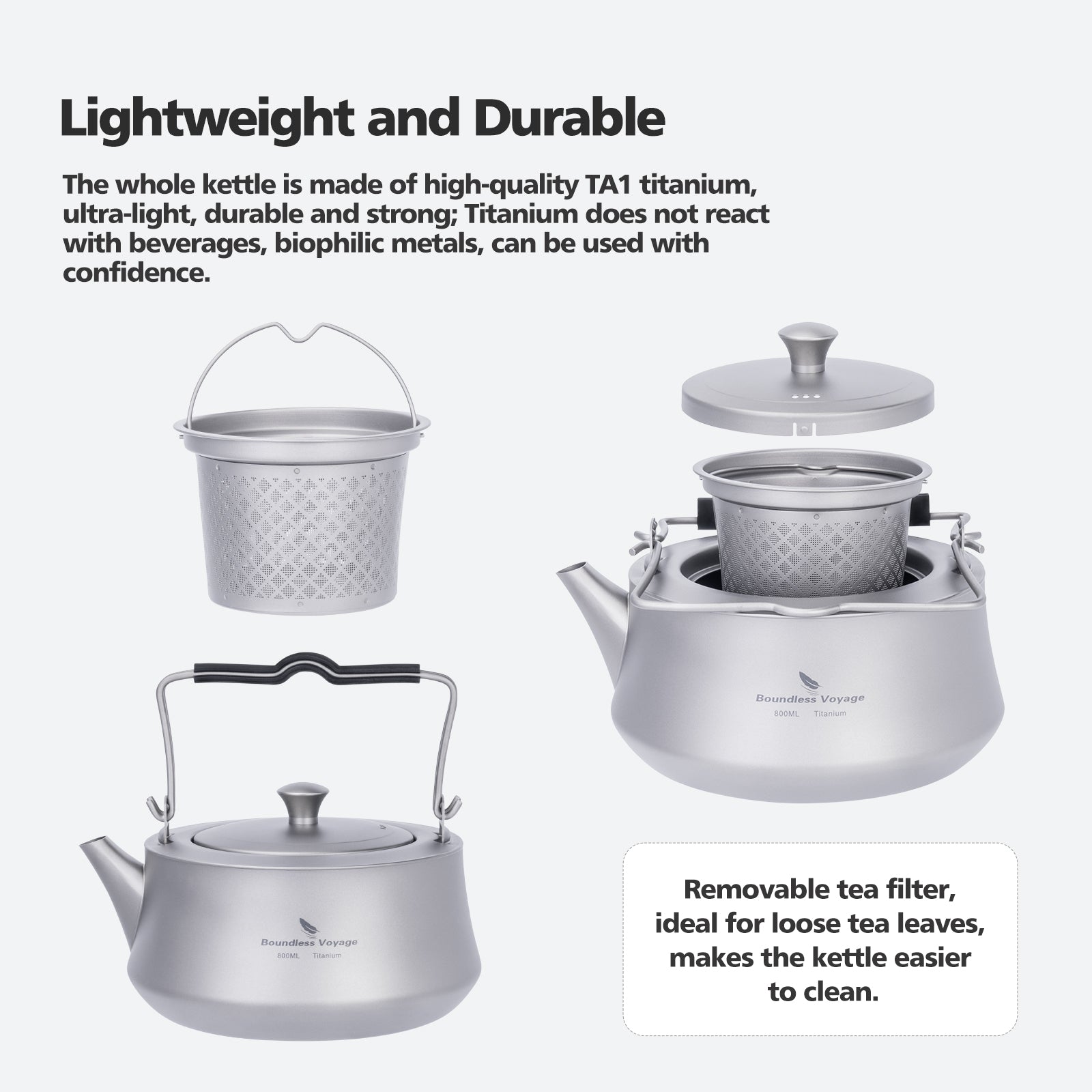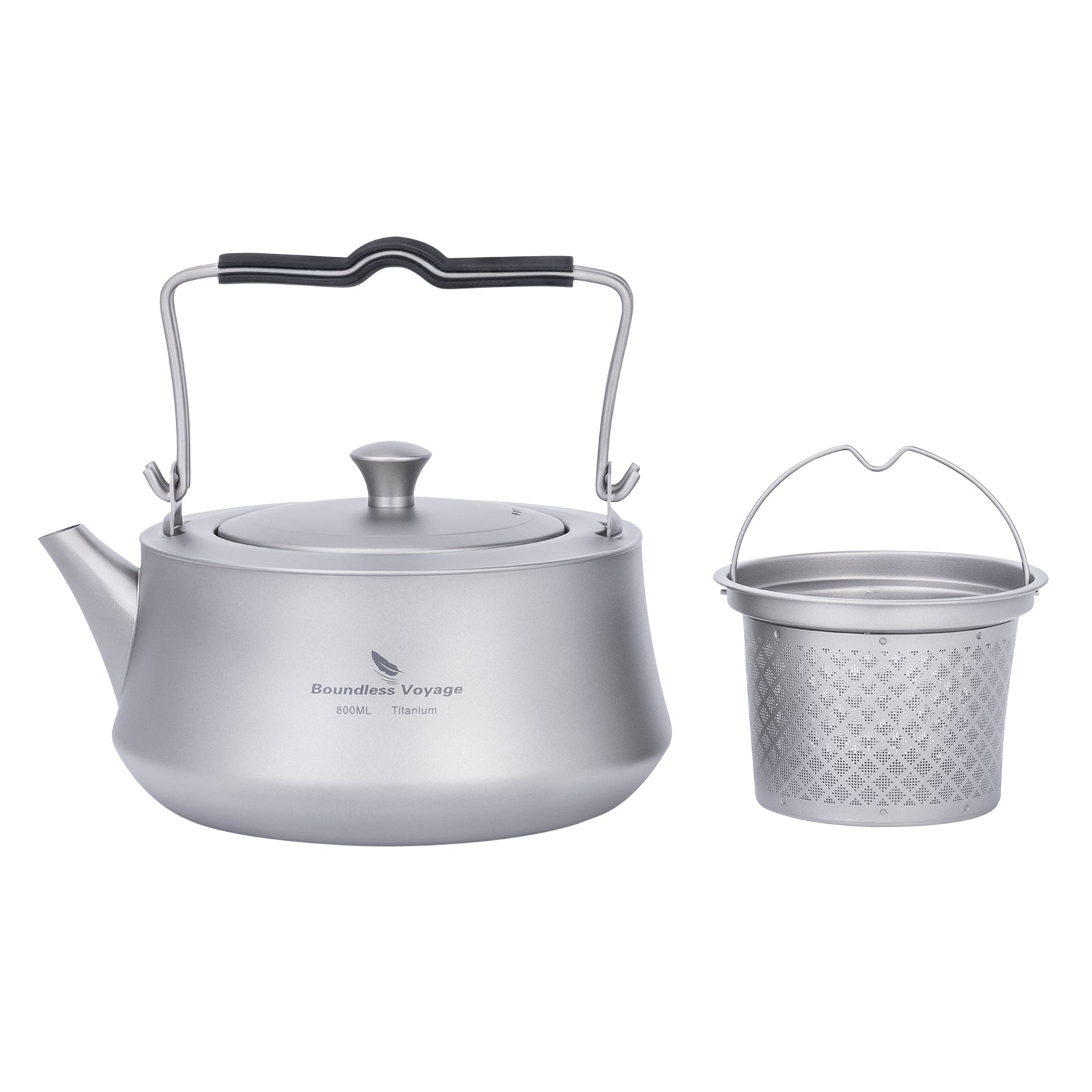 Boundless Voyage 800ML Titanium Kettle with Filter & Folding Handle Ultralight Teapot Outdoor Camping Water Jug for Loose Tea Ti3093D