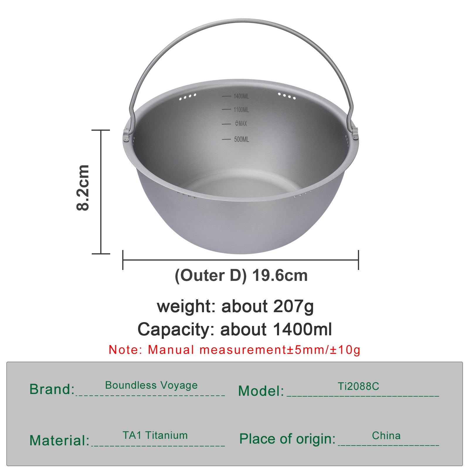 Boundless Voyage Titanium Camping Pot – Ultralight Multifunctional Outdoor Cooking Pot for Hiking & Travel