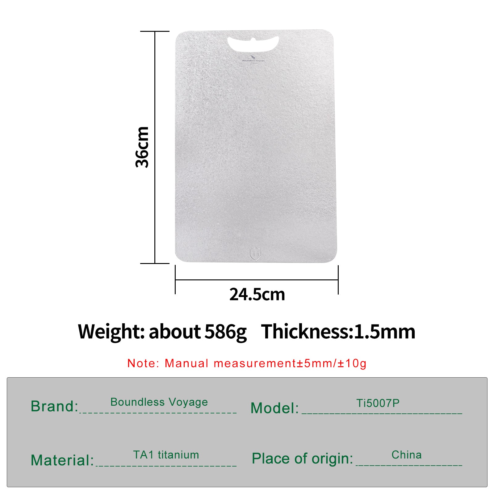Boundless Voyage TA1 Titanium Chopping Board | Lightweight Multifunctional Metal Cutting Board with Hanging Hole for Camping, Kitchen & Outdoor Cooking