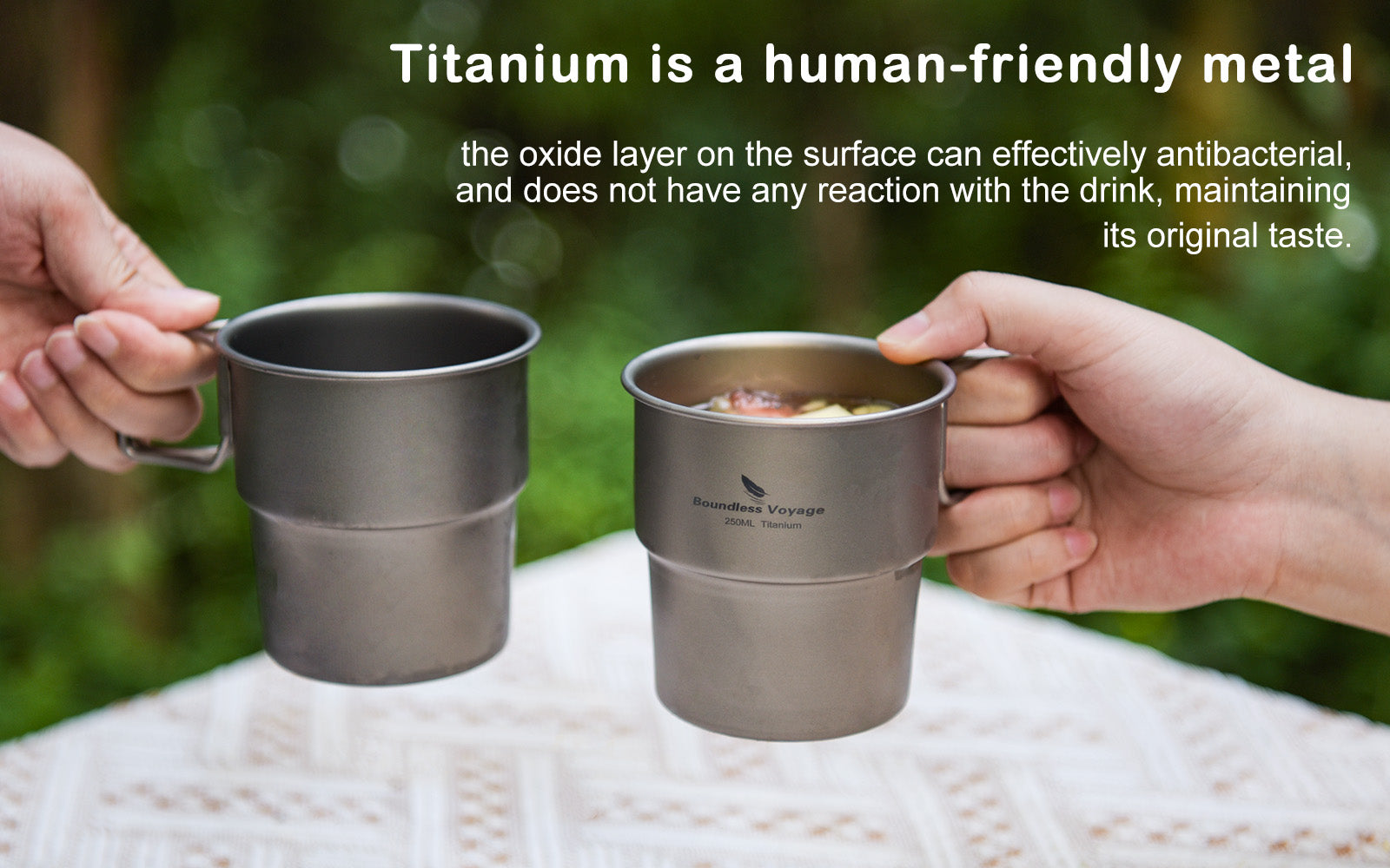 2. Titanium is a human-friendly metal, the oxide layer on the surface can effectively antibacterial, and does not have any reaction with the drink, maintaining its original taste.