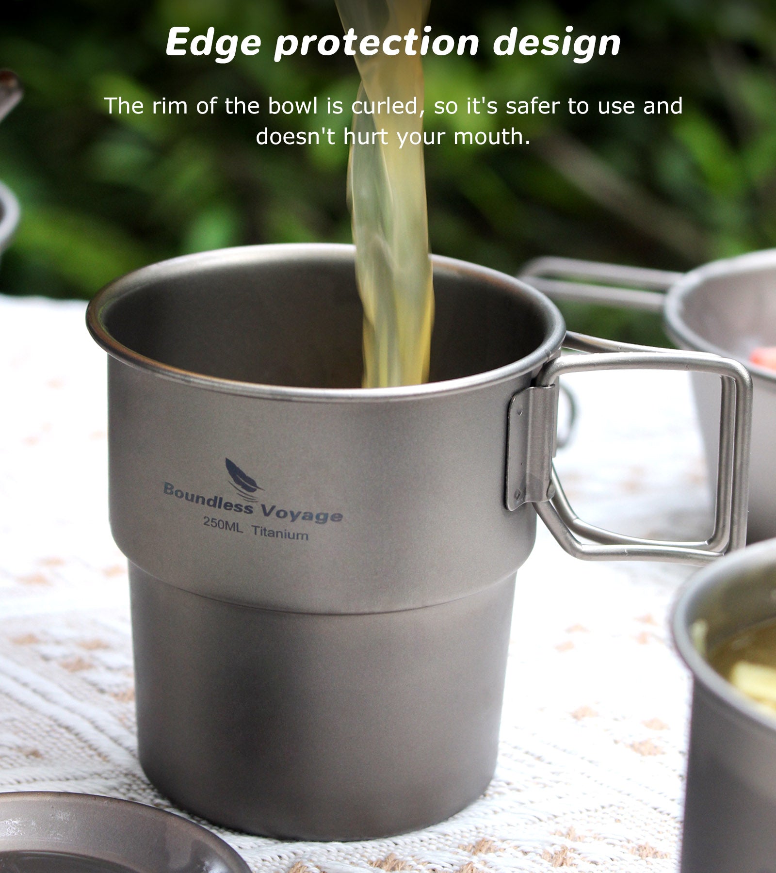 Boundless Voyage Titanium Coffee Cup Portable European Stackable Mug Outdoor Accompanying Water Bottle