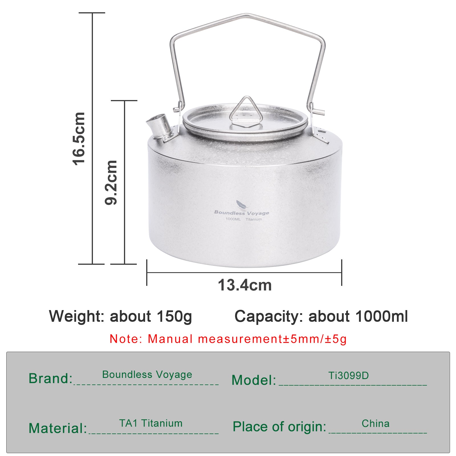 Boundless Voyage Titanium Kettle With Folding Handle 1000ml