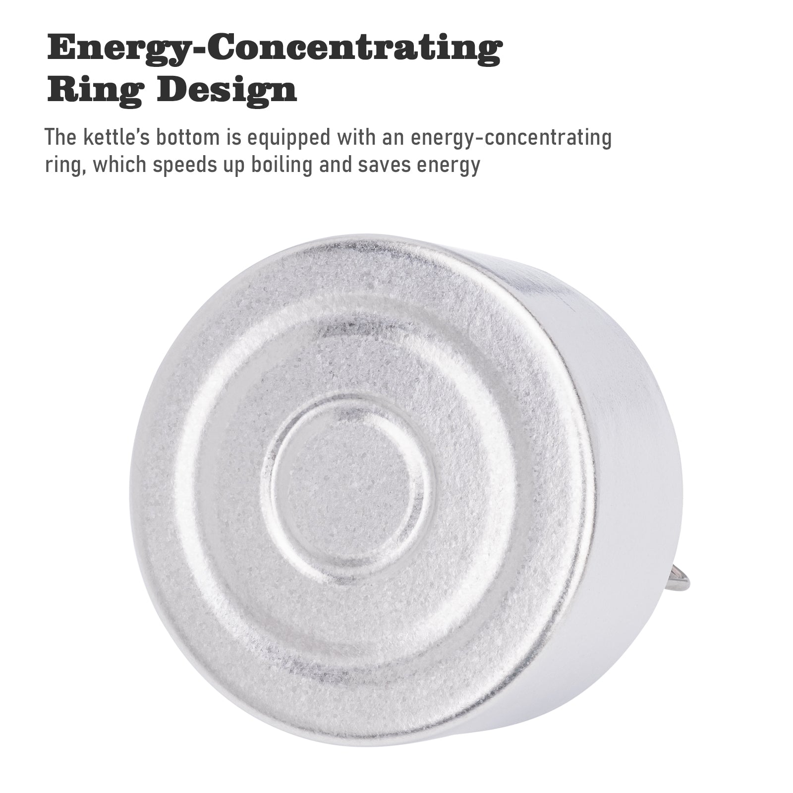 The kettle’s bottom is equipped with an energy-concentrating ring, which speeds up boiling and saves energy.