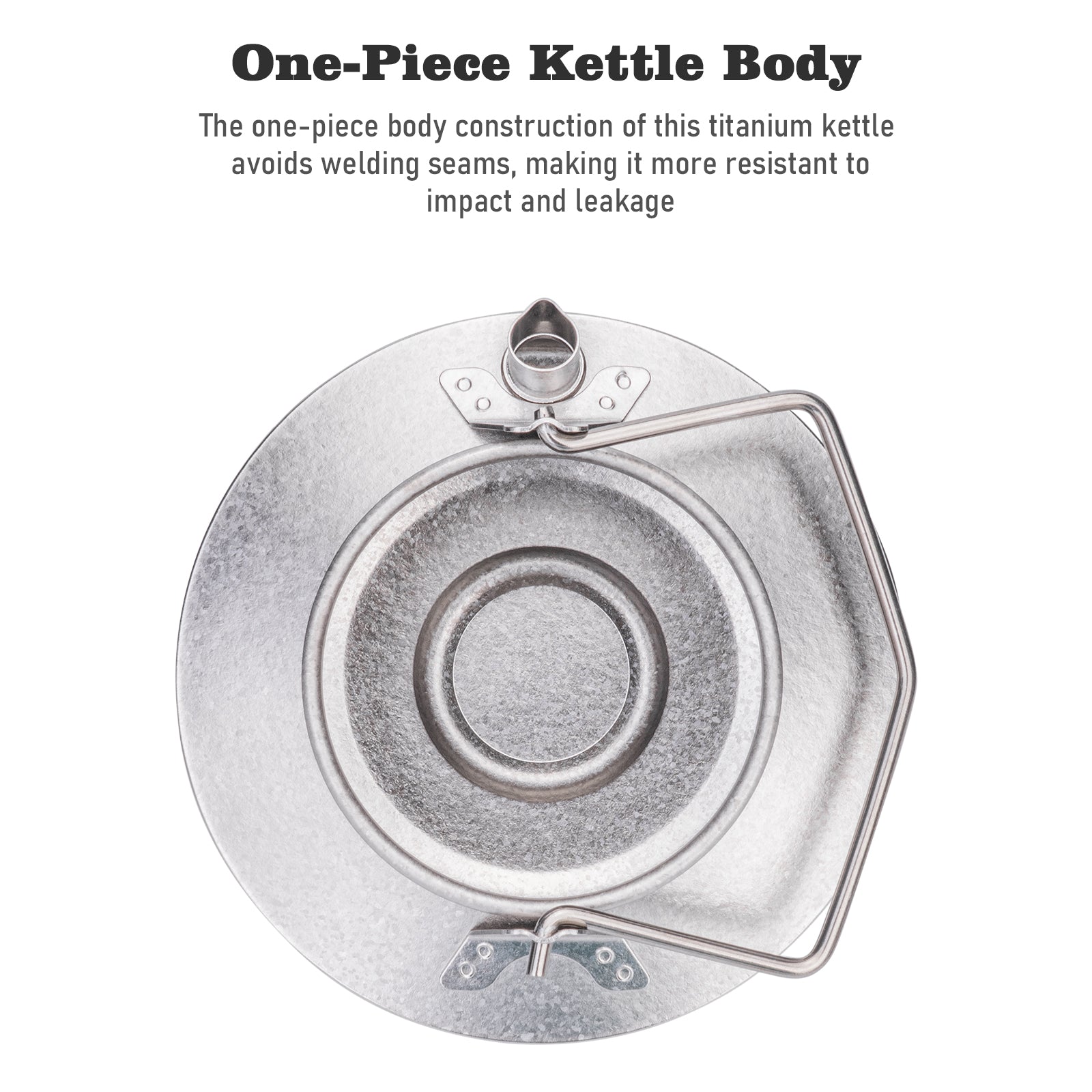 The one-piece body construction of this titanium kettle avoids welding seams, making it more resistant to impact and leakage.