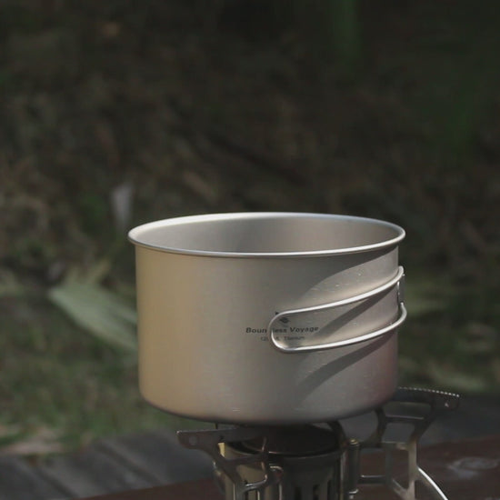 Boundless Voyage Titanium Pot & Frying Pan Set 1200ml – Ultralight Camping Cookware, Nesting TA1 Titanium Cooking Set for Backpacking, Hiking & Outdoor Cooking