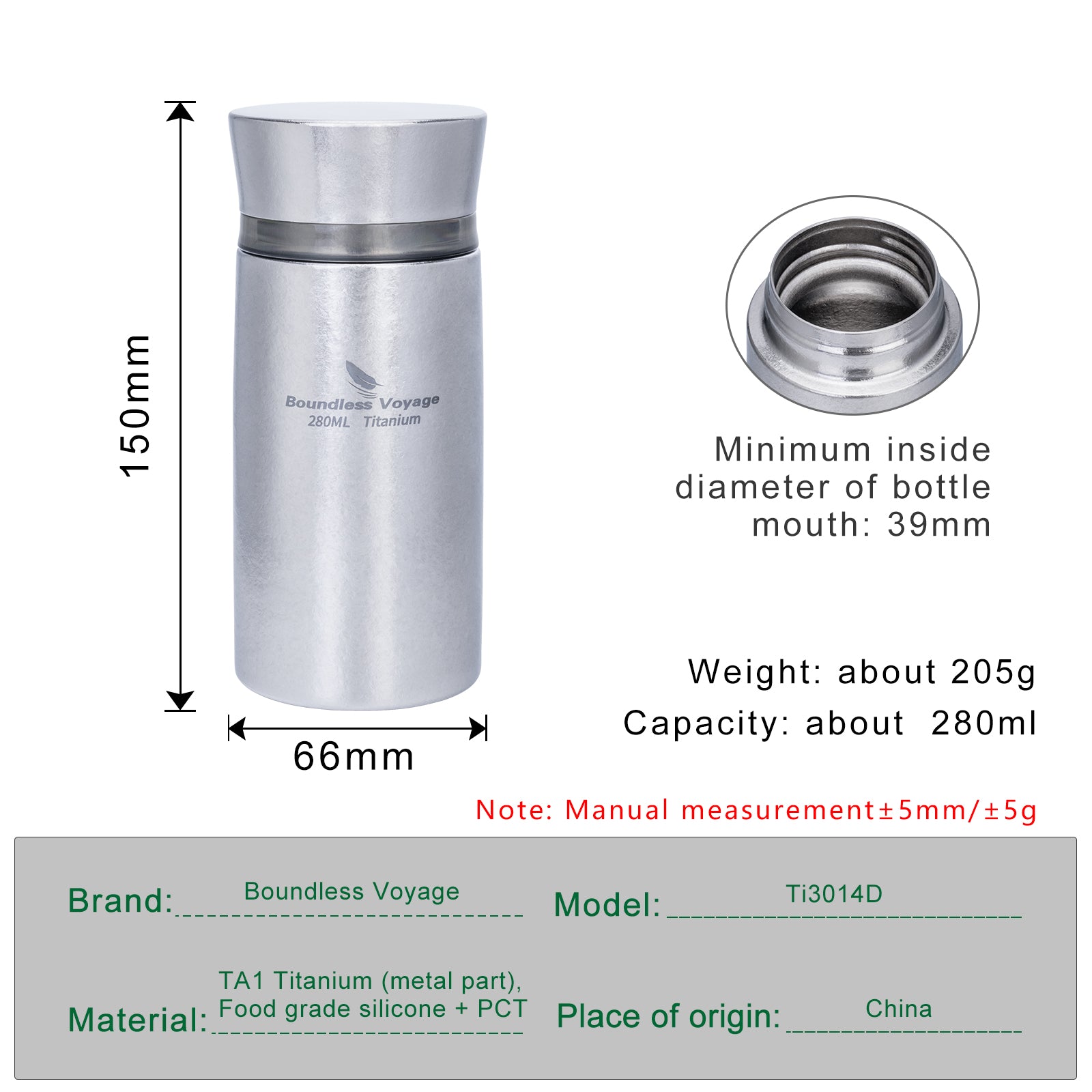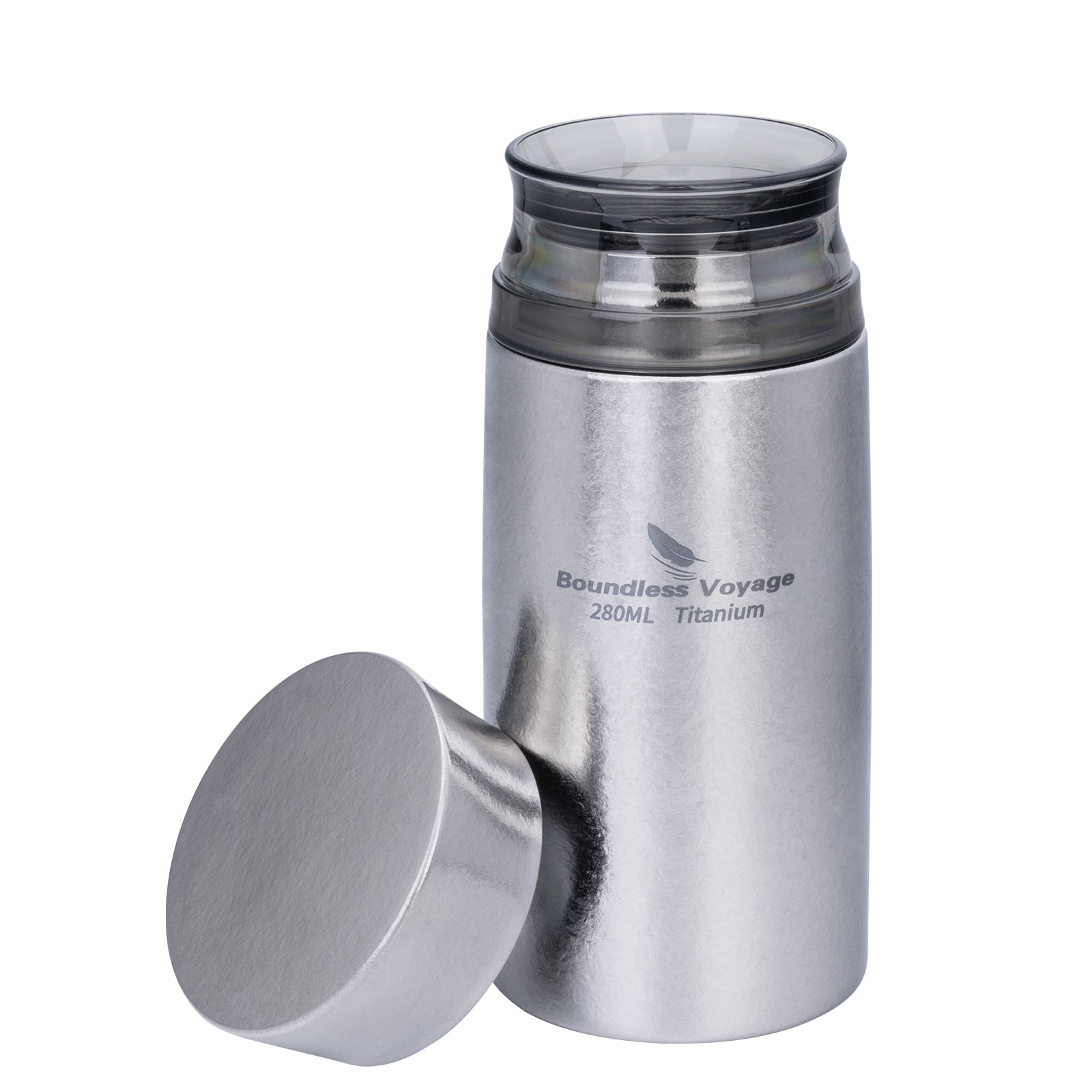 Boundless Voyage 280ml Titanium Vacuum Flask Small Insulated Bottle Portable Car Travel Coffee Tea Cup Keeps Hot or Cold Mini Sports Water Bottle for Chlid Girls Ti3014D