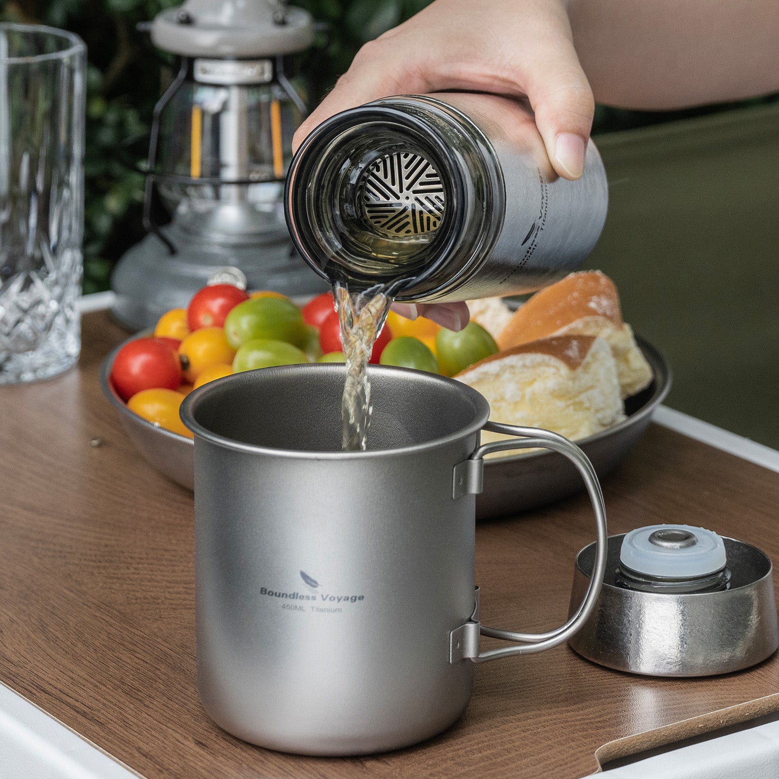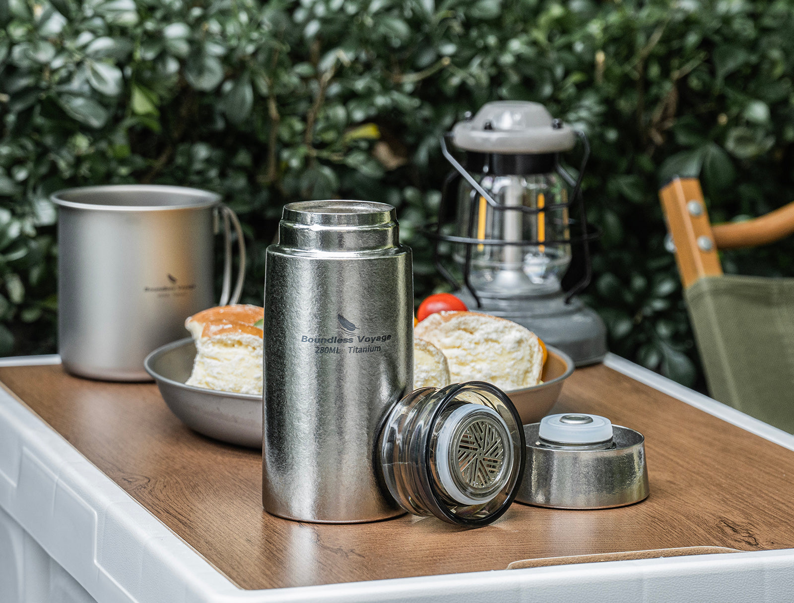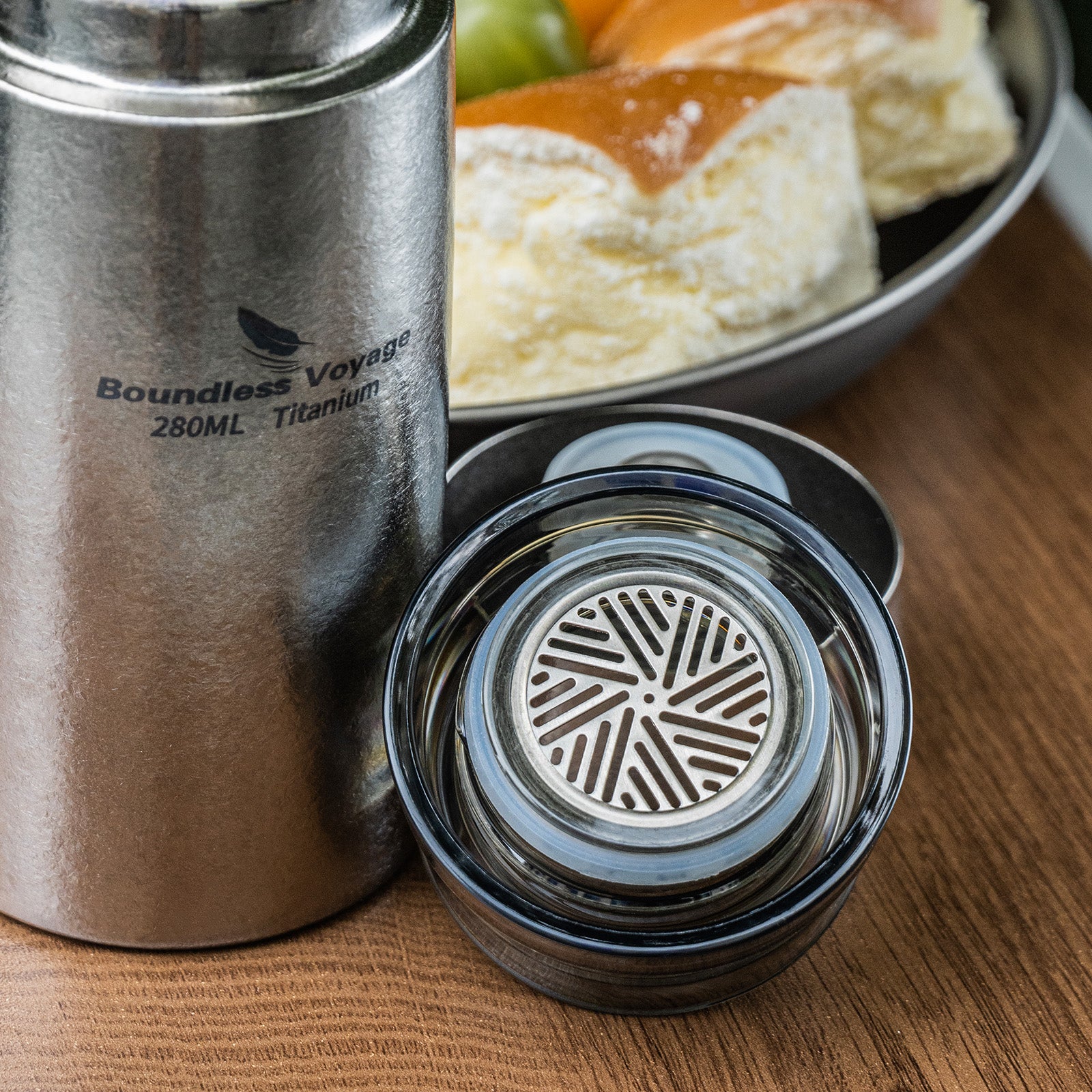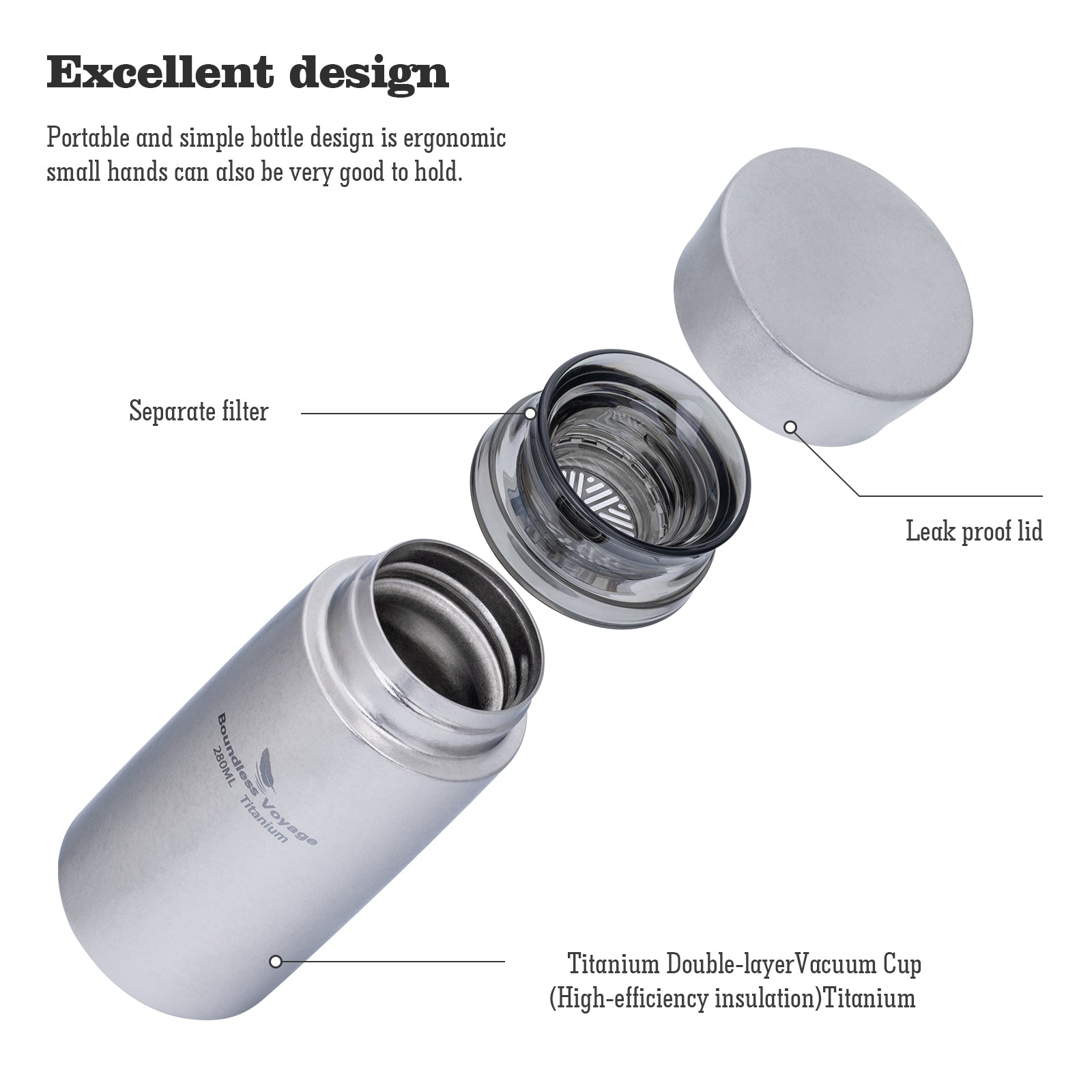 This Titanium Vacuum Flask is equipped with a strainer, which can effectively filter the tea leaves and make the tea taste better.