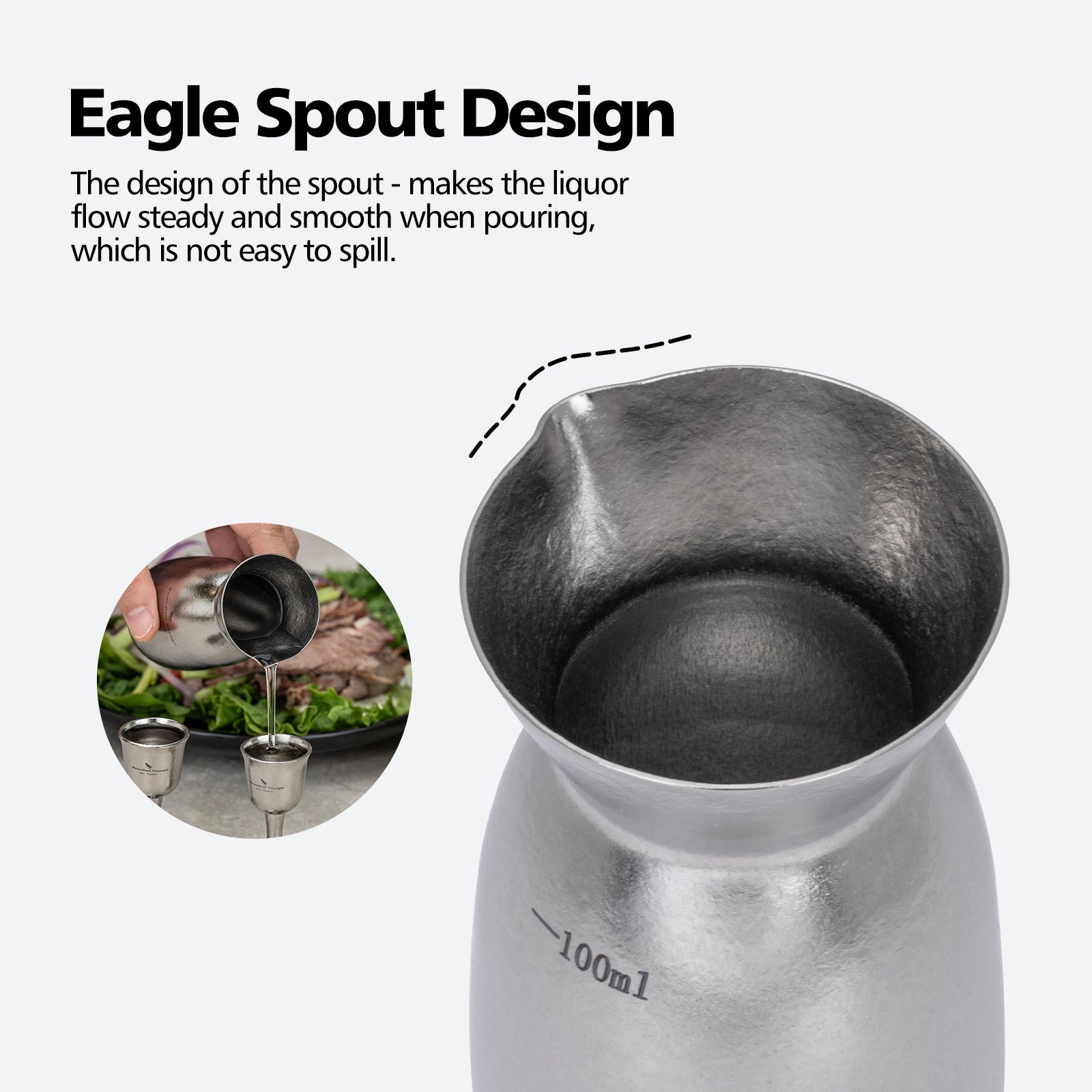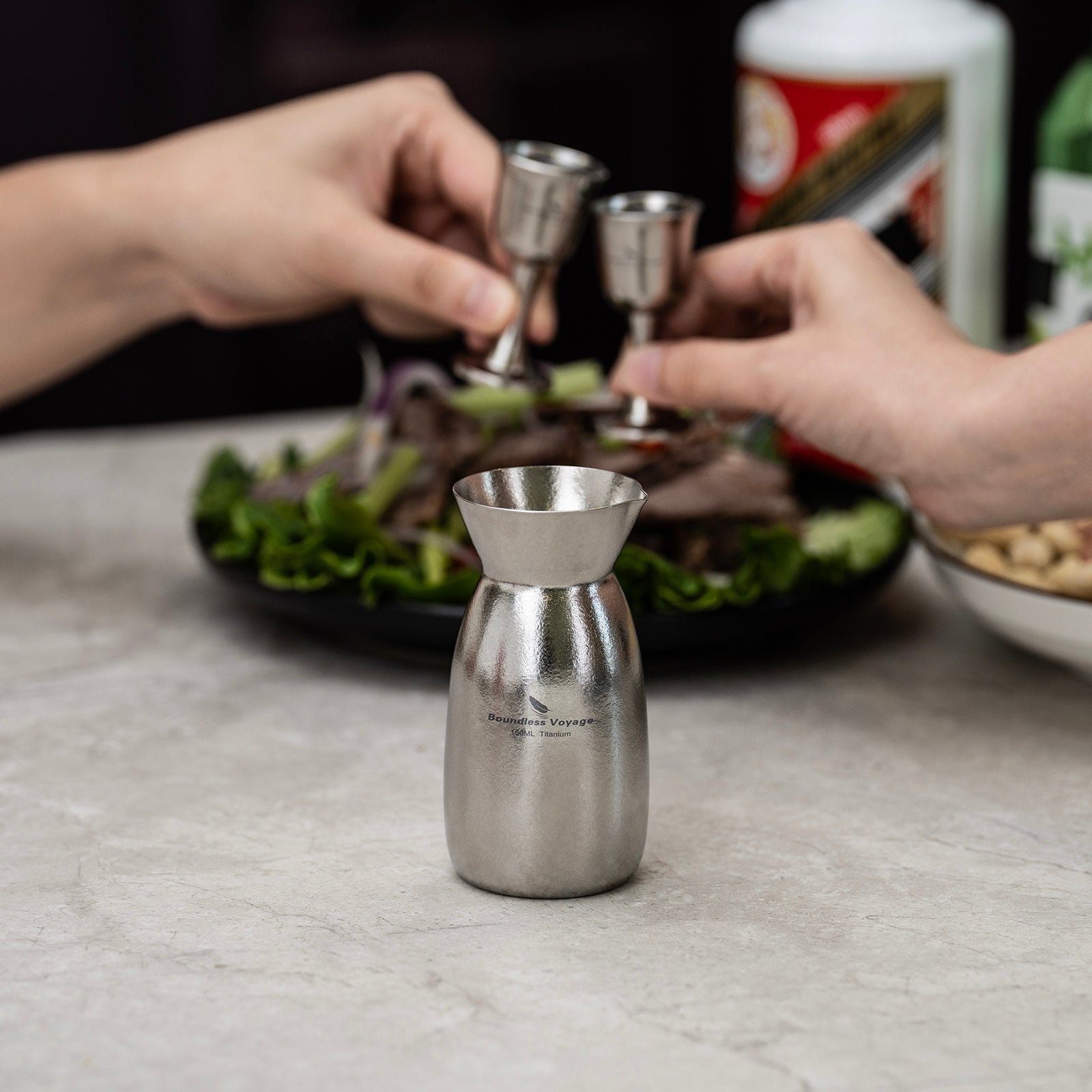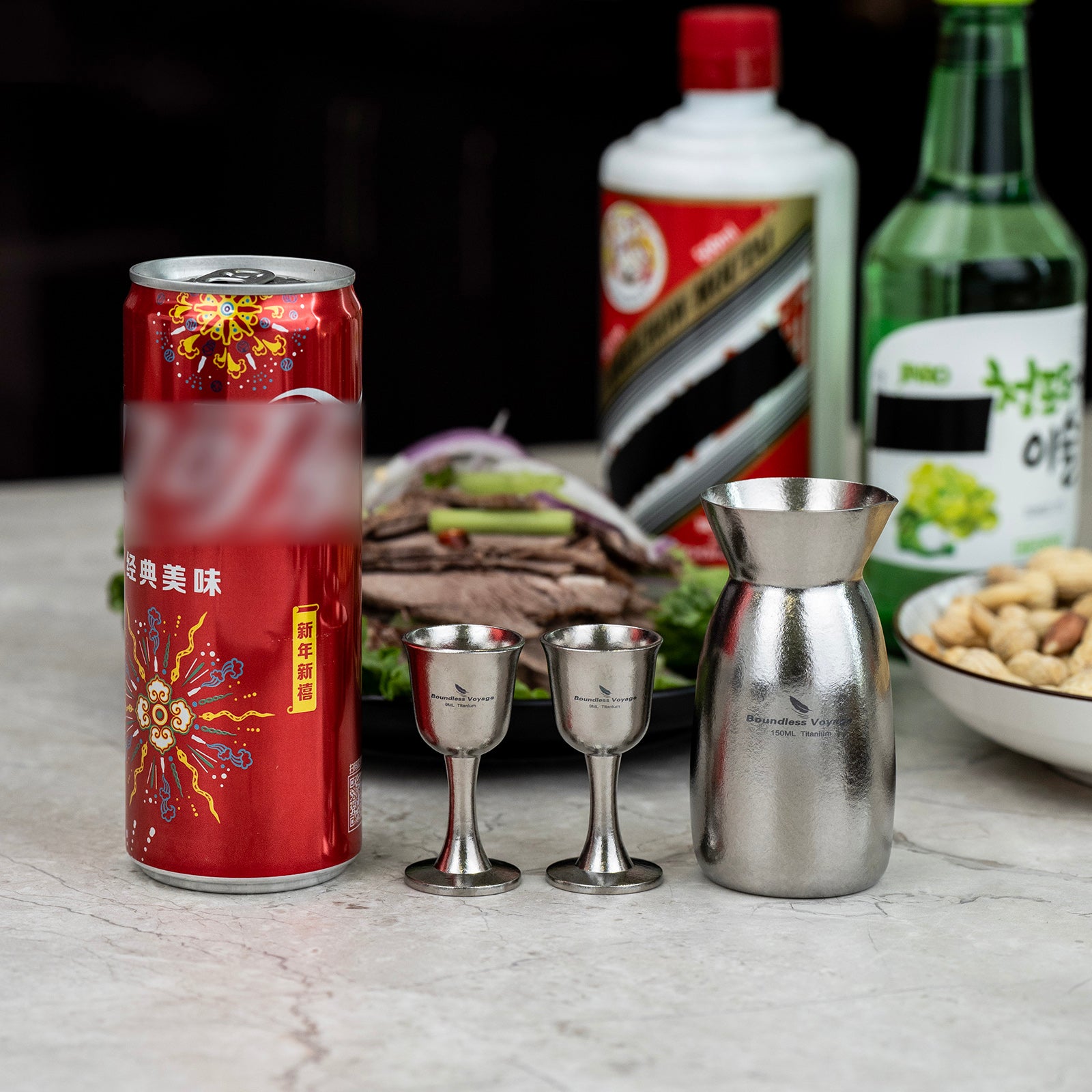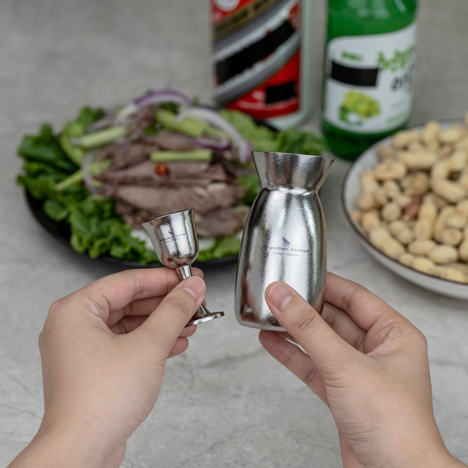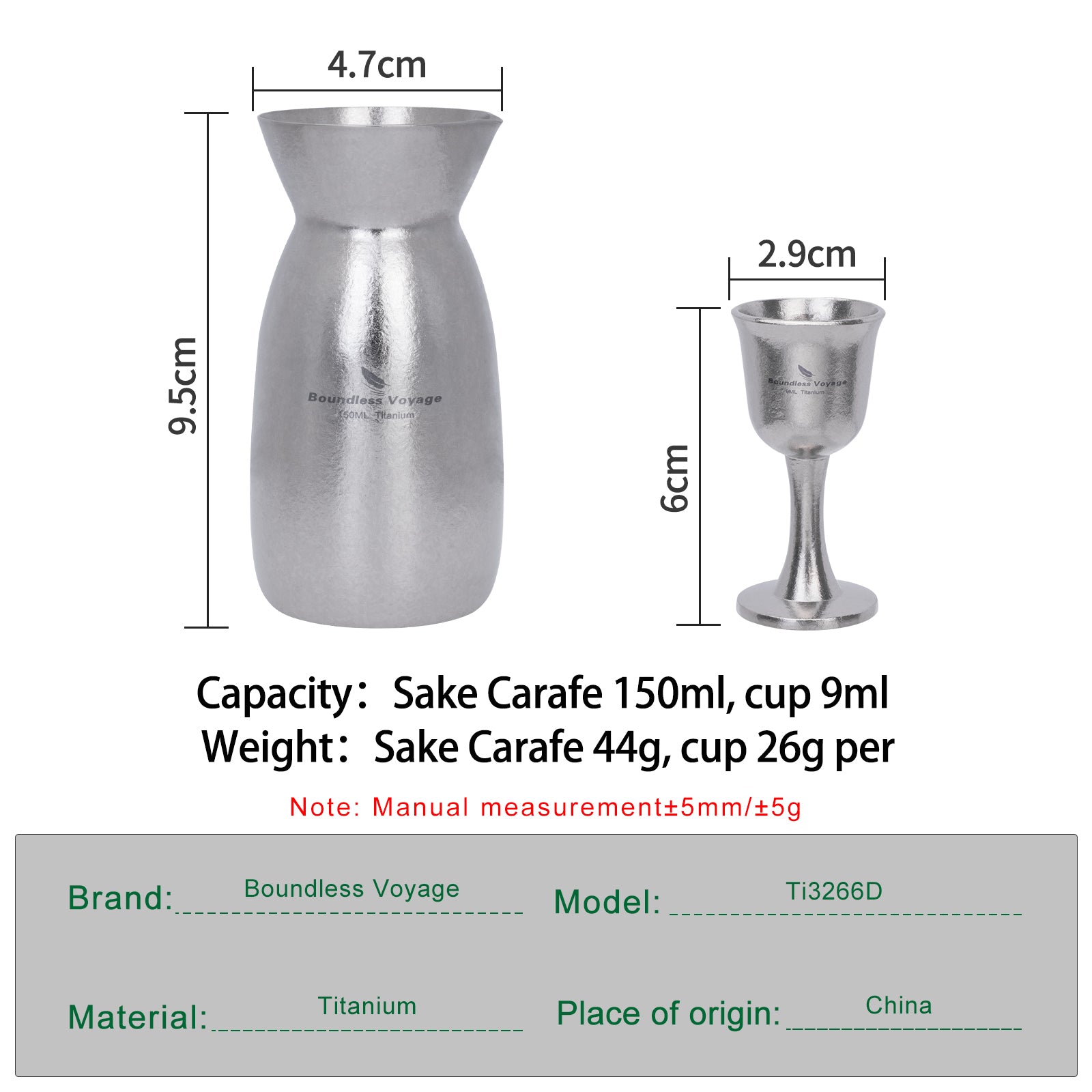 Boundless Voyage 3 Pieces Titanium Japanese Sake Set, 150ml Sake Carafe with 2 Cups, for for Sake Japanese Wine/Soju/Drink/Tea Dishwasher Safe Portable Drinkware for Outdoor Travel