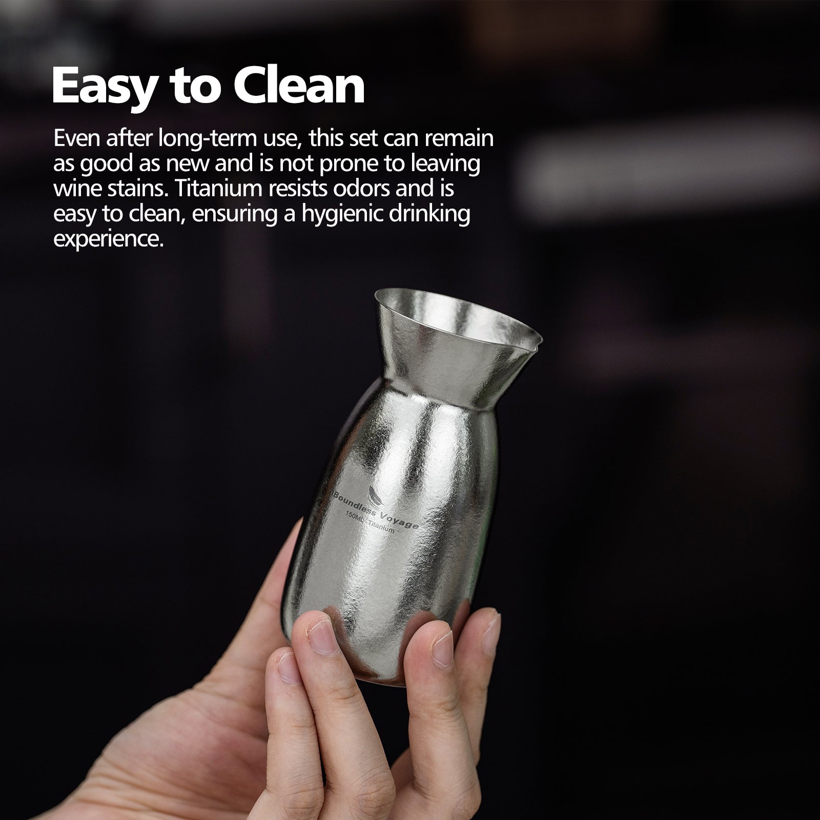 Even after long-term use, this set can remain as good as new and is not prone to leaving wine stains. Titanium resists odors and is easy to clean, ensuring a hygienic drinking experience.