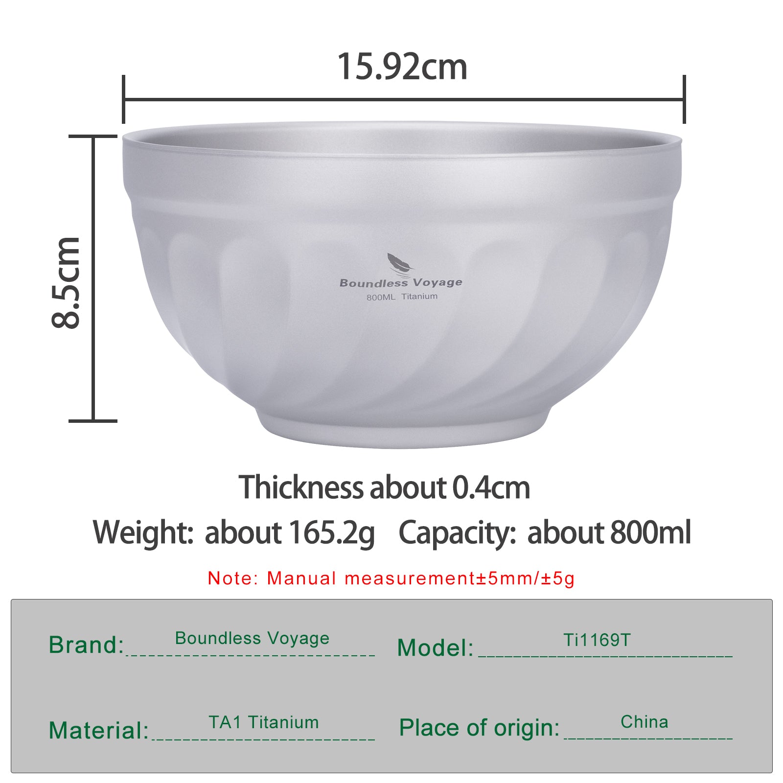 Size & Weight:(Outer D) 15.92cm, (H) 8.5cm, weight about 165.2g, thickness about 0.4cm