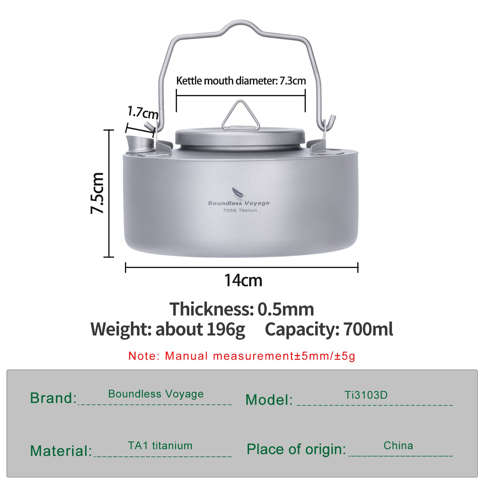 Boundless Voyage Camping Single-layer Titanium Kettle with Folding Handle 700ML Durable Bushcraft Gear Open Fire Kettle