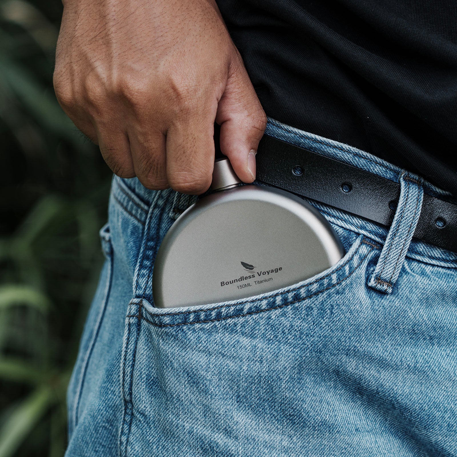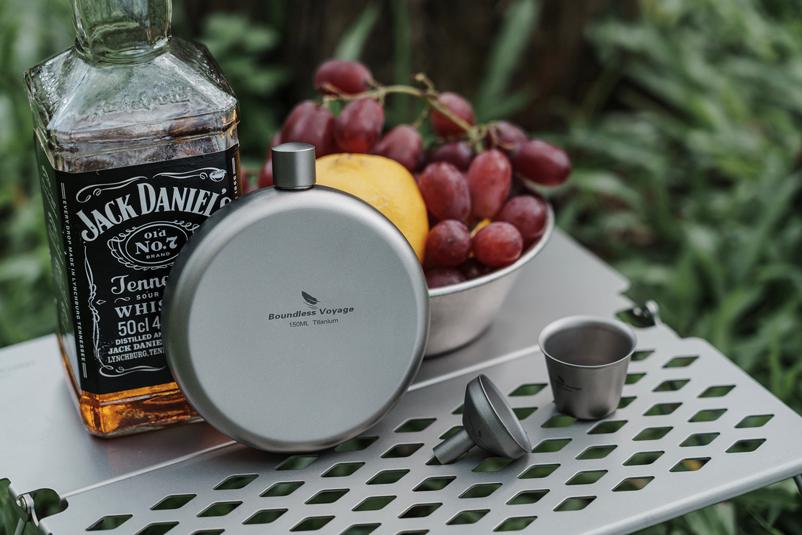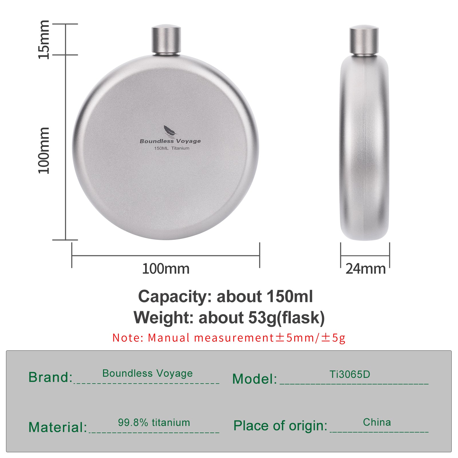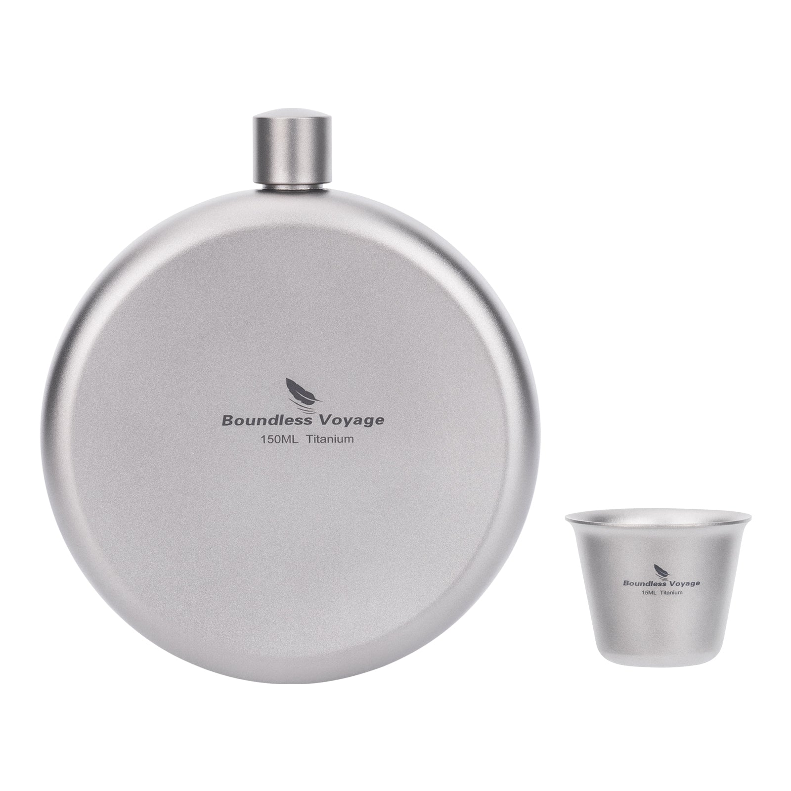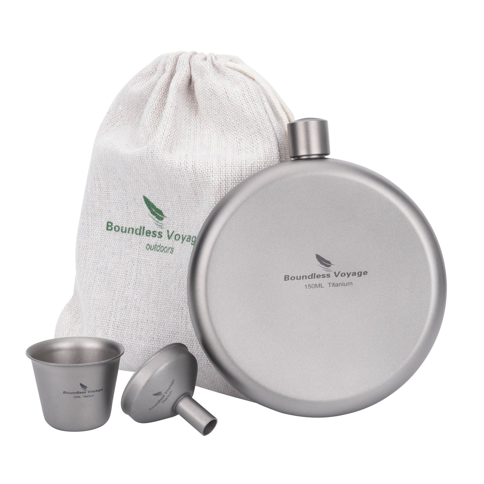 Boundless Voyage Camping Titanium Hip Flask Portable Round Wine Bottle With Funnel Whiskey Alcohol Drink ware Accessories