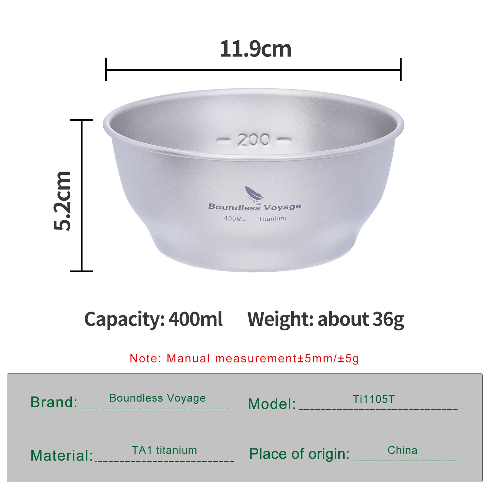 Boundless Voyage Camping Titanium Single-Walled Bowls Lightweight Dish Plate Outdoor Tableware 400ml