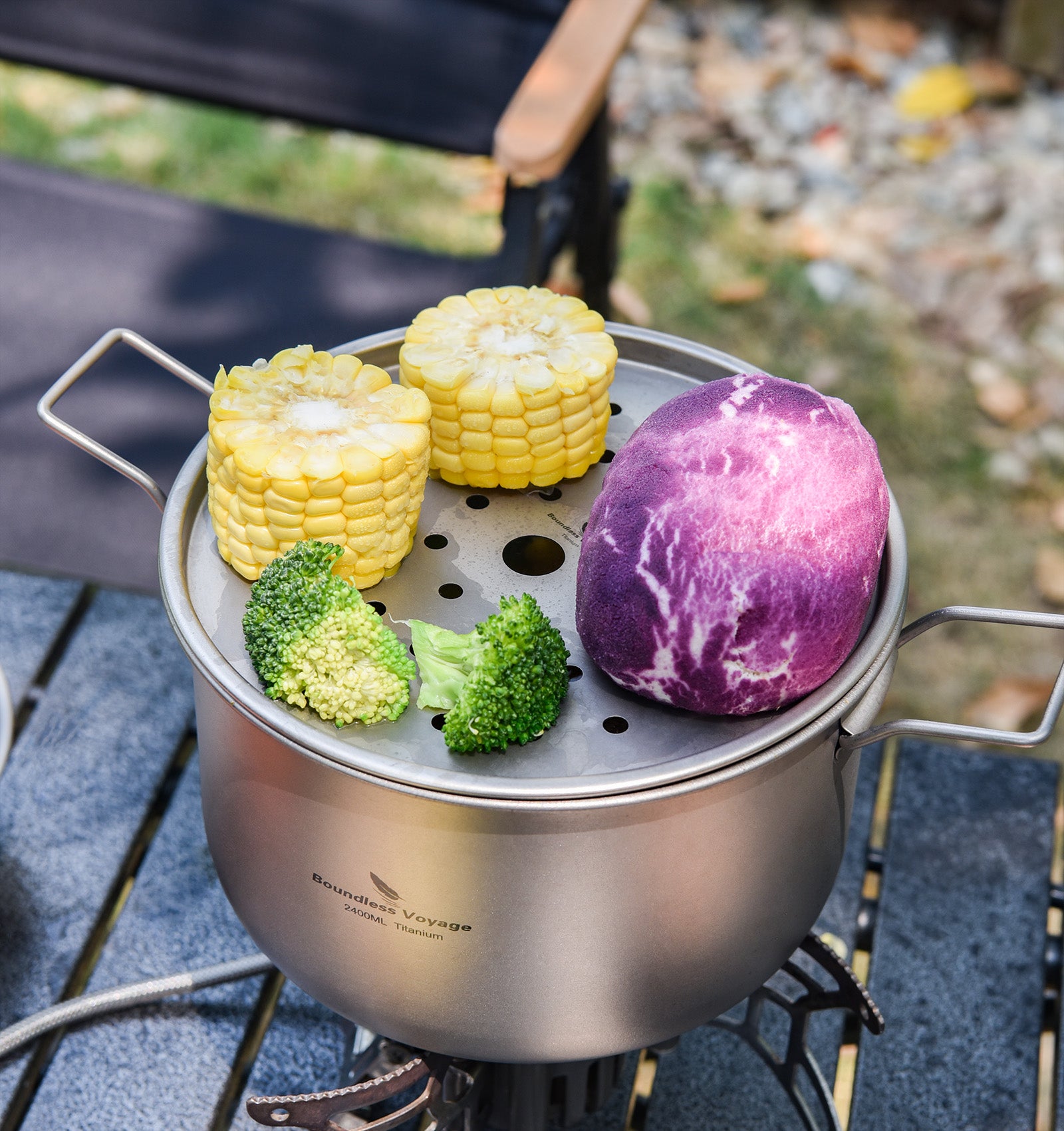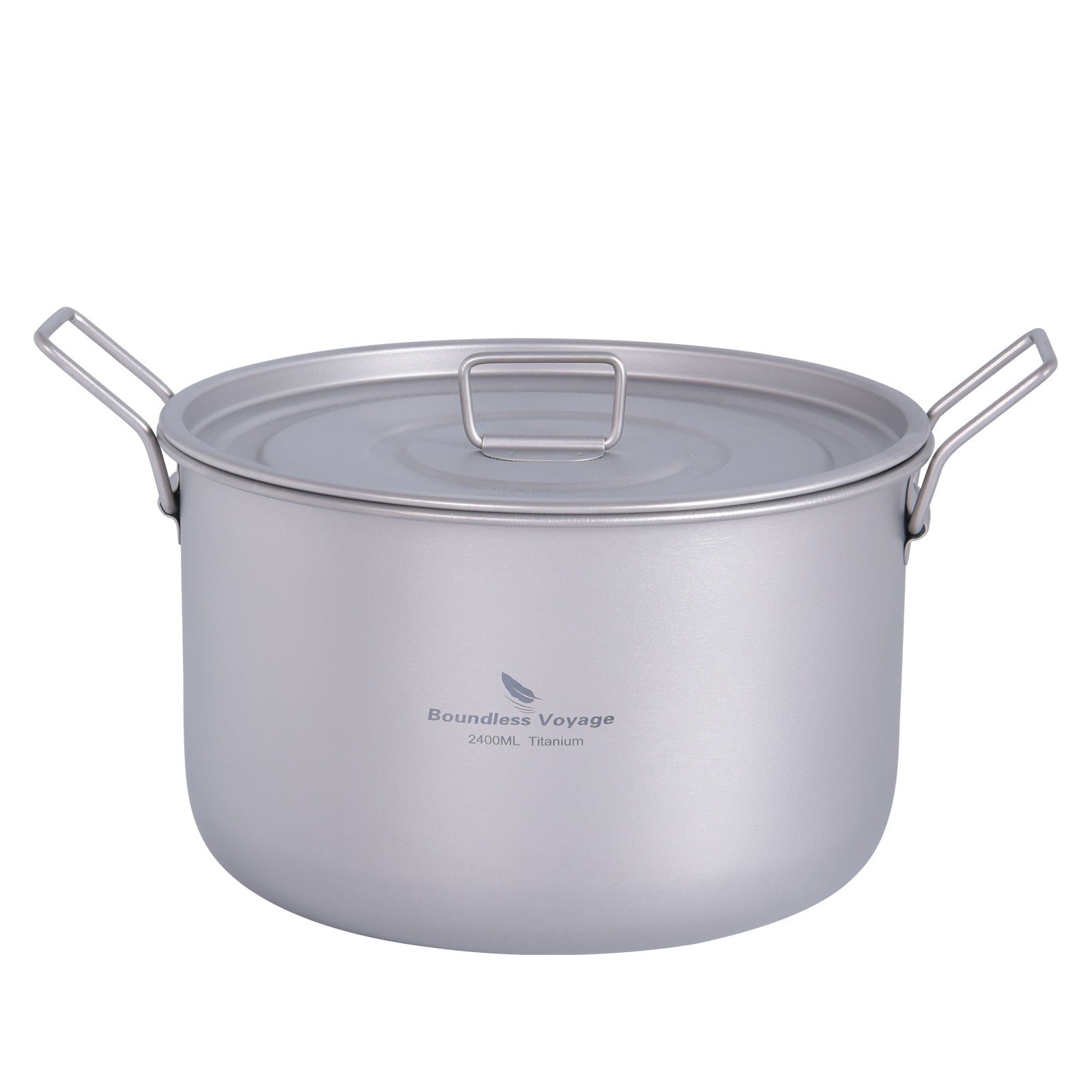Boundless Voyage Lightweight 2400ml Titanium Pot Outdoor Portable Cooking Set hiking Backpacking Pot for Hiking Trekking Picnic Fishing Mountaineering