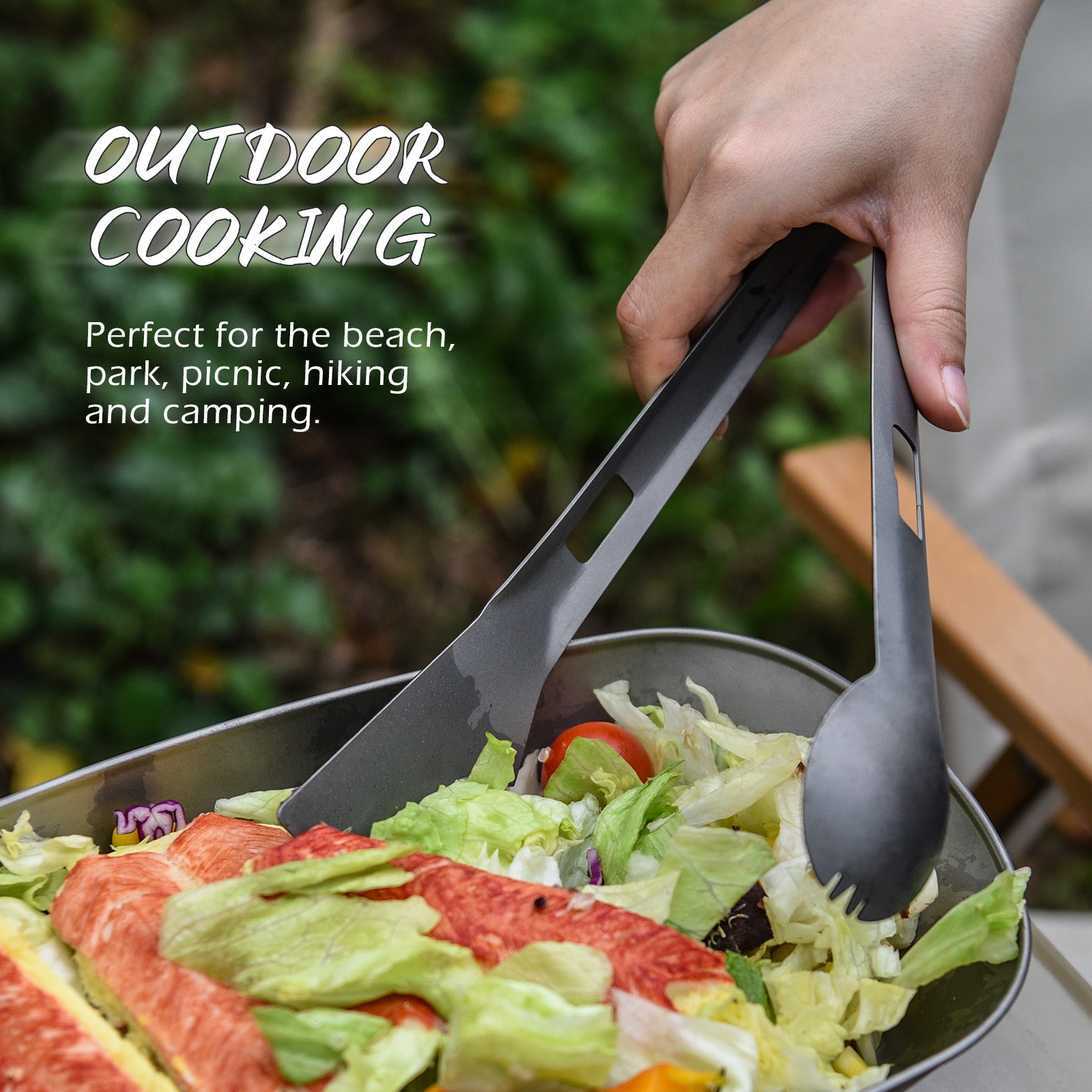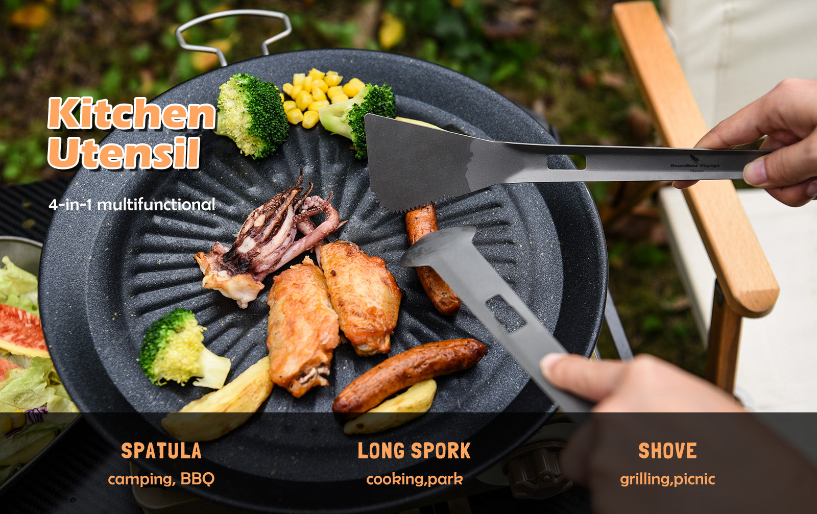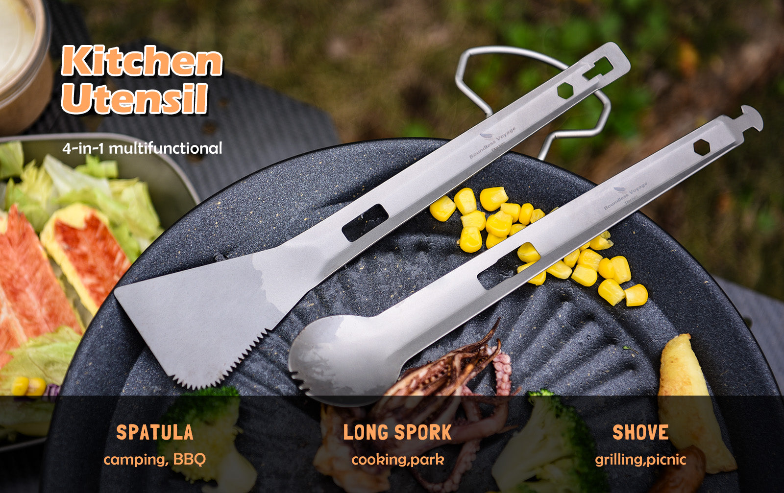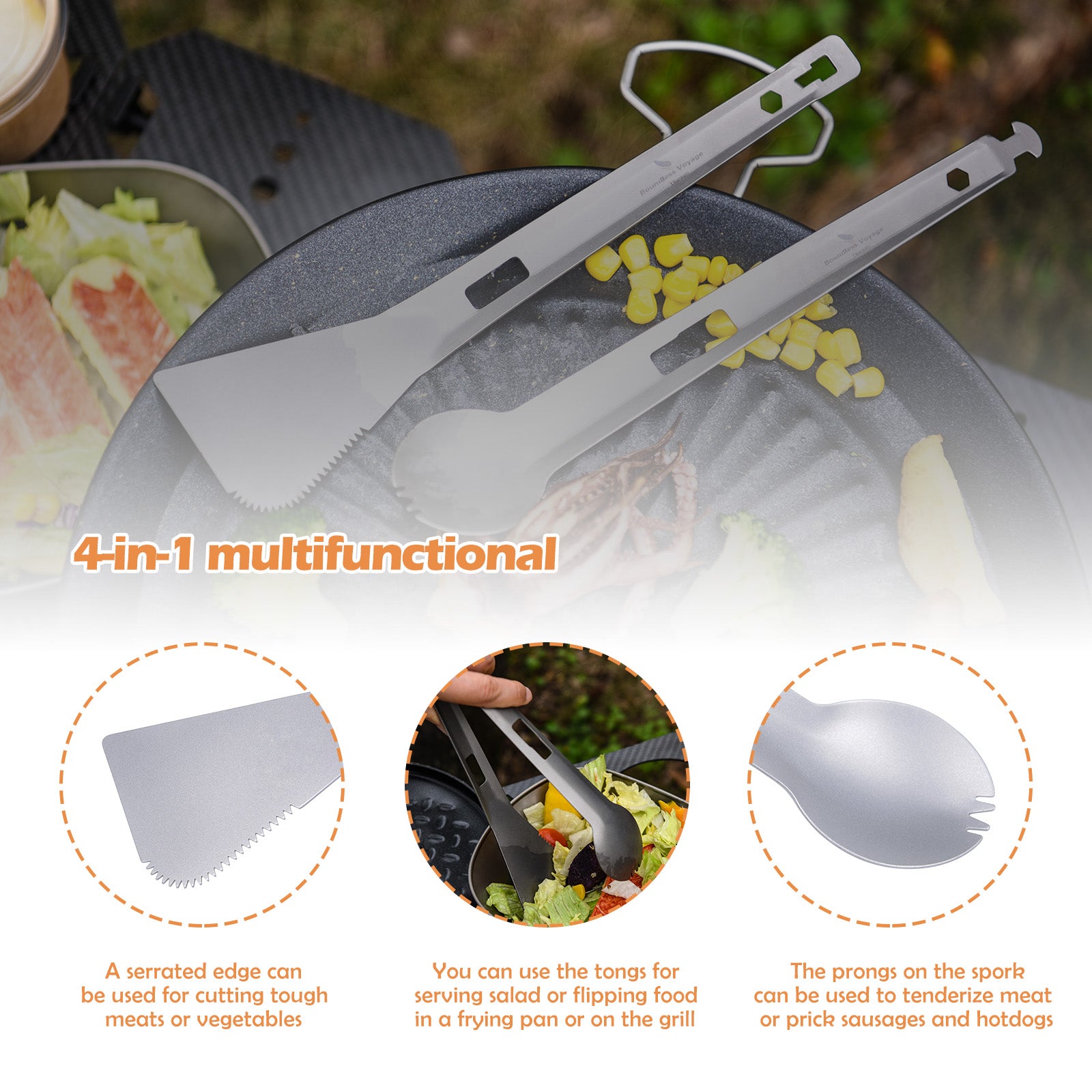 Boundless Voyage Titanium Alloy Tong, Spork,Shovel and Spatula All-In-One Utensil for Portable Lightweight Multi Utensil for Camping Kitchen Cookware Backpacking, Travel, Outdoor Cooking Eating