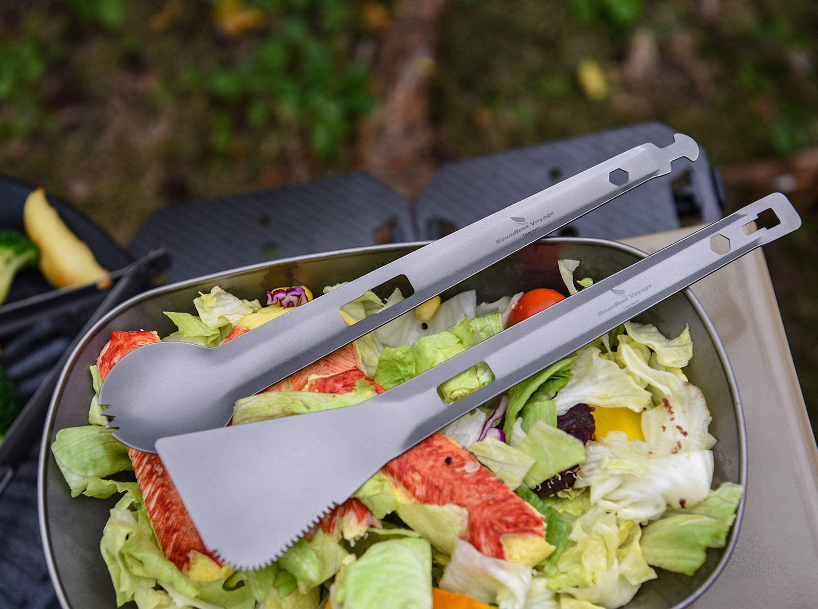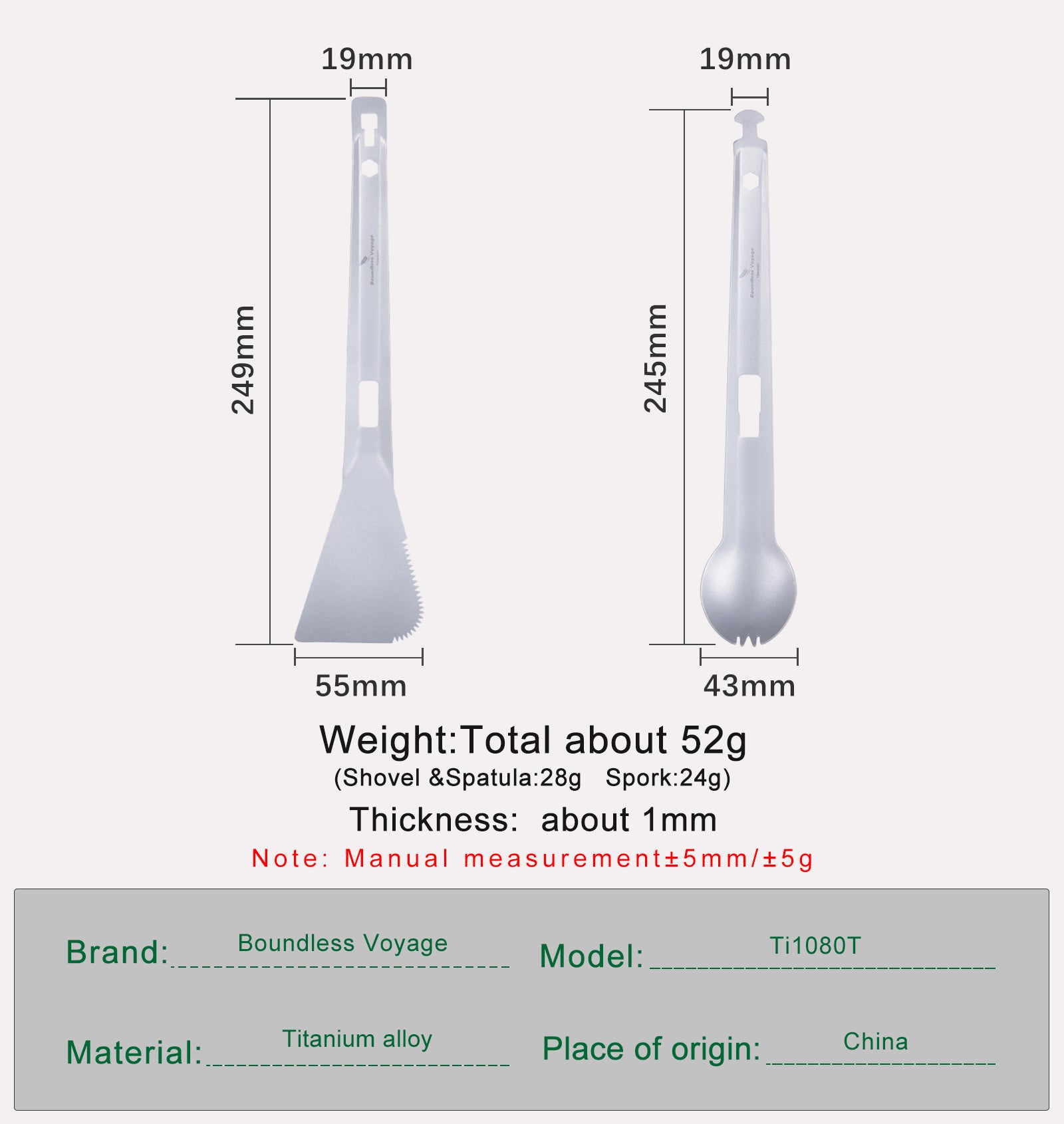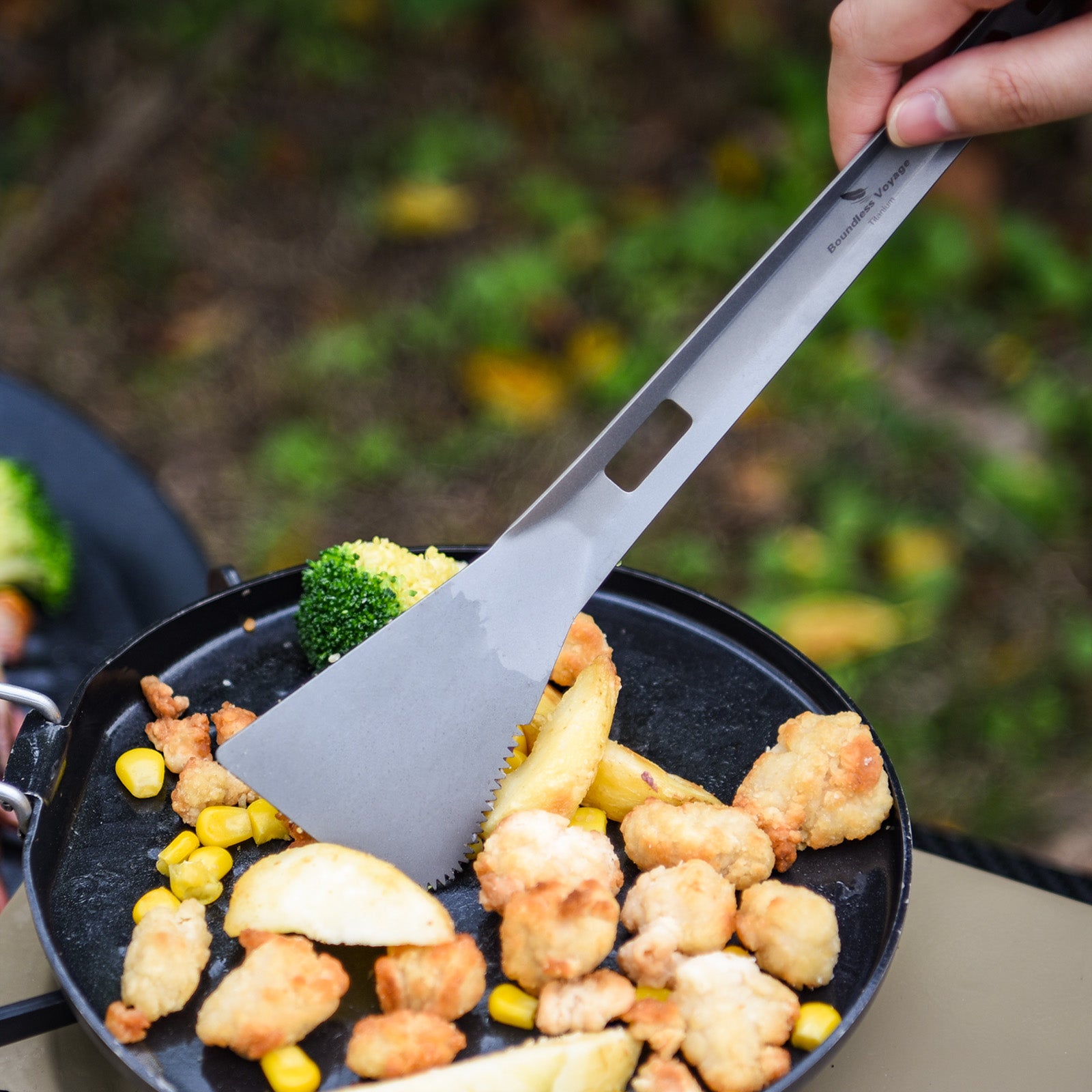 Boundless Voyage Titanium Alloy Tong, Spork,Shovel and Spatula All-In-One Utensil for Portable Lightweight Multi Utensil for Camping Kitchen Cookware Backpacking, Travel, Outdoor Cooking Eating