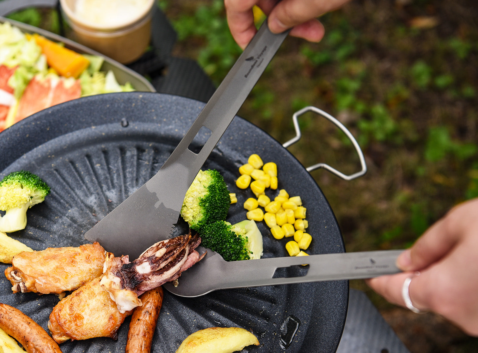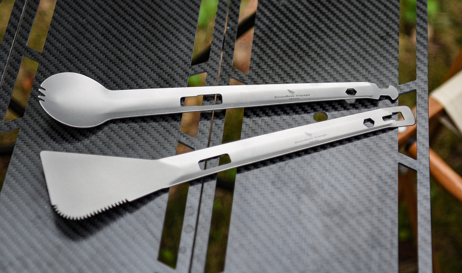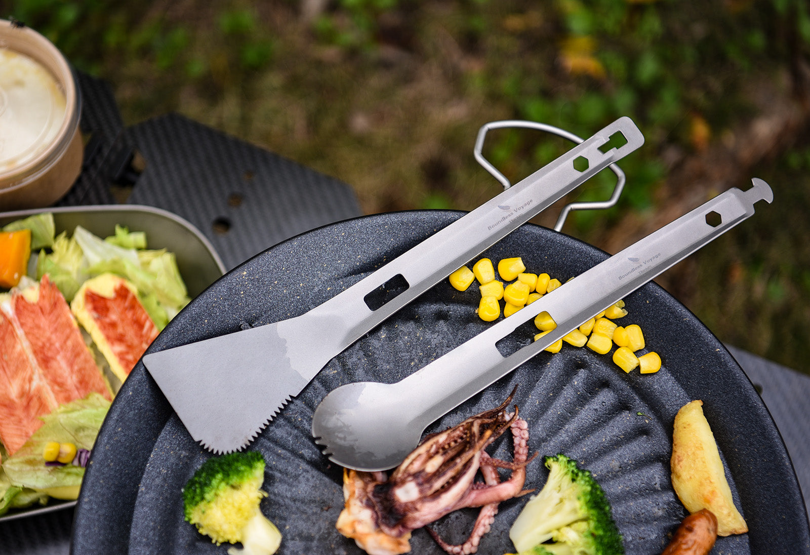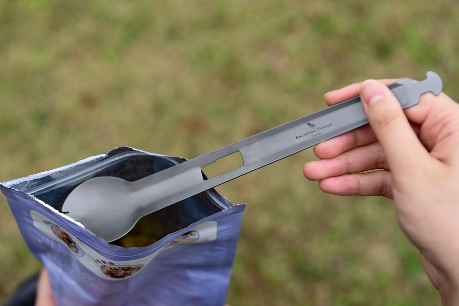 Boundless Voyage Titanium Alloy Tong, Spork,Shovel and Spatula All-In-One Utensil for Portable Lightweight Multi Utensil for Camping Kitchen Cookware Backpacking, Travel, Outdoor Cooking Eating