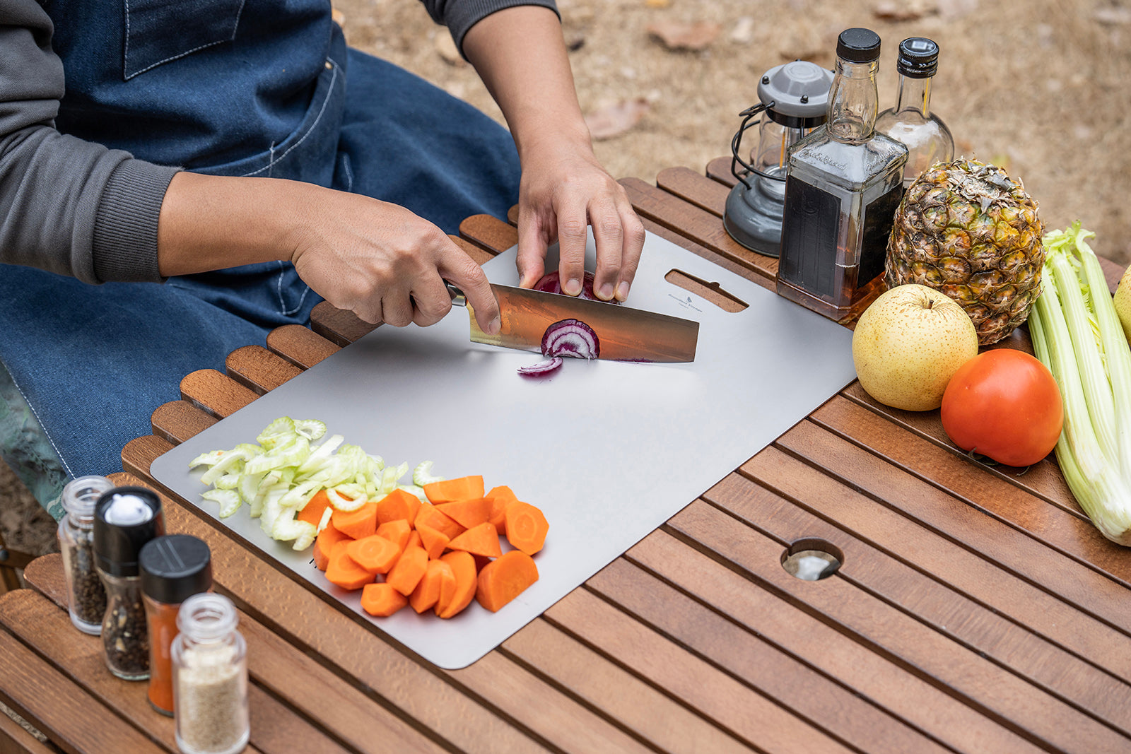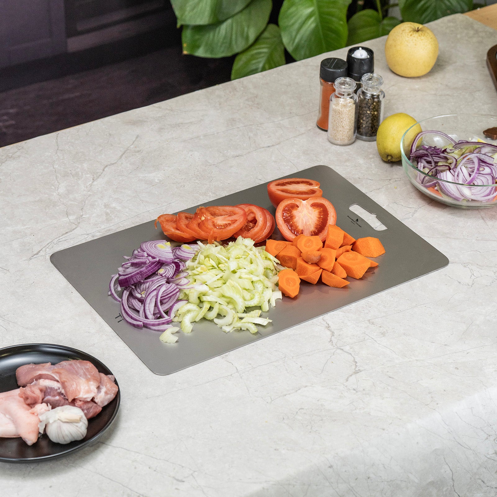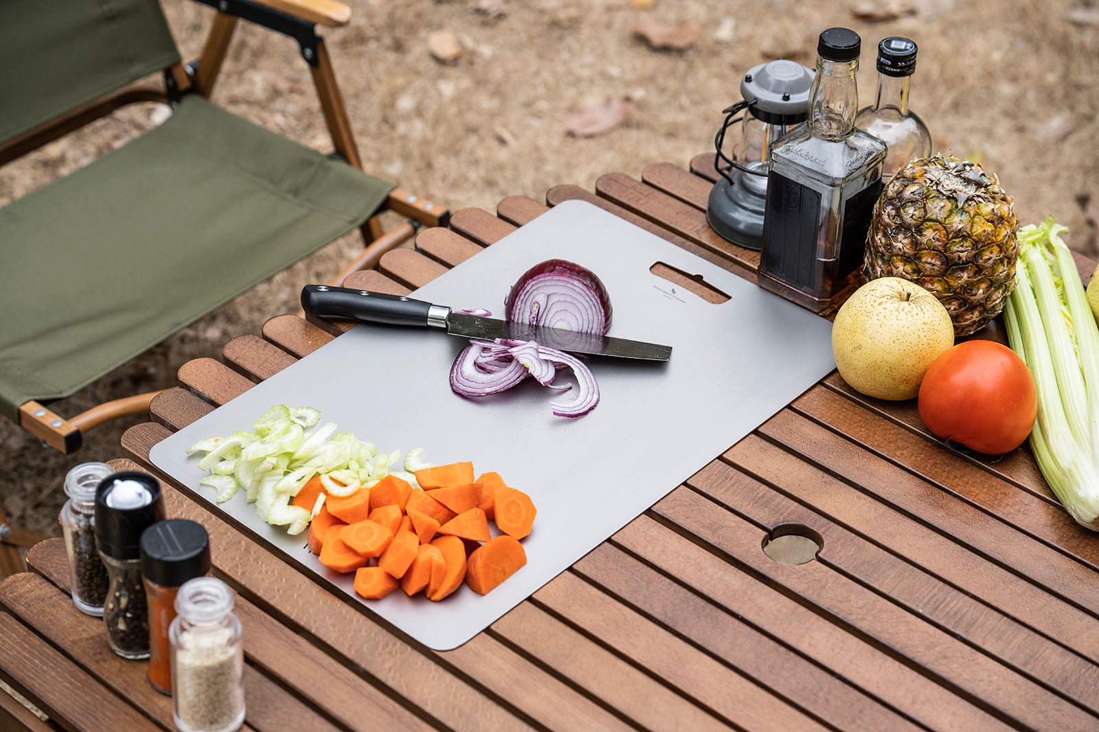 The lightweight characteristics of titanium make it only about half the weight of traditional cutting boards, making it easy to take and store;