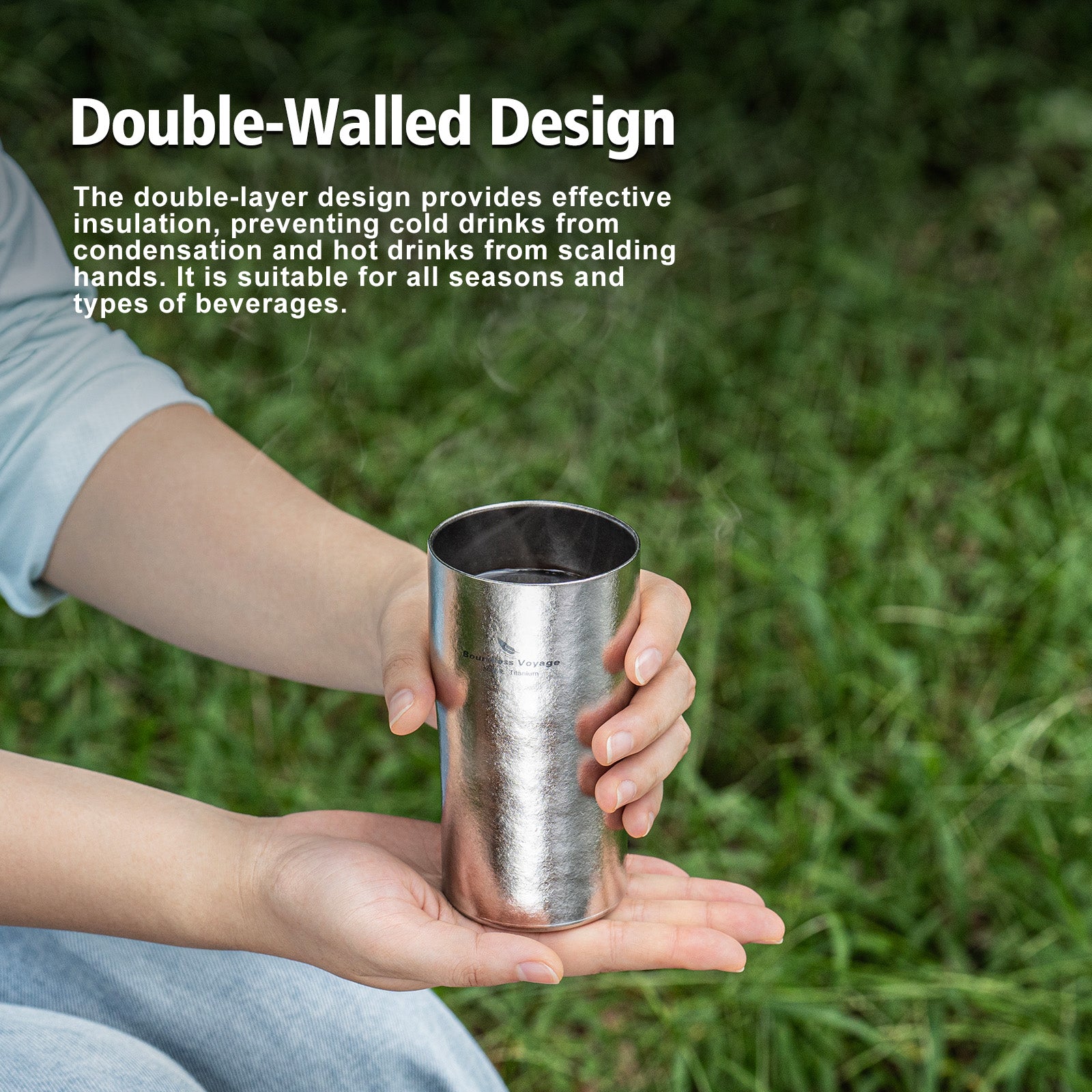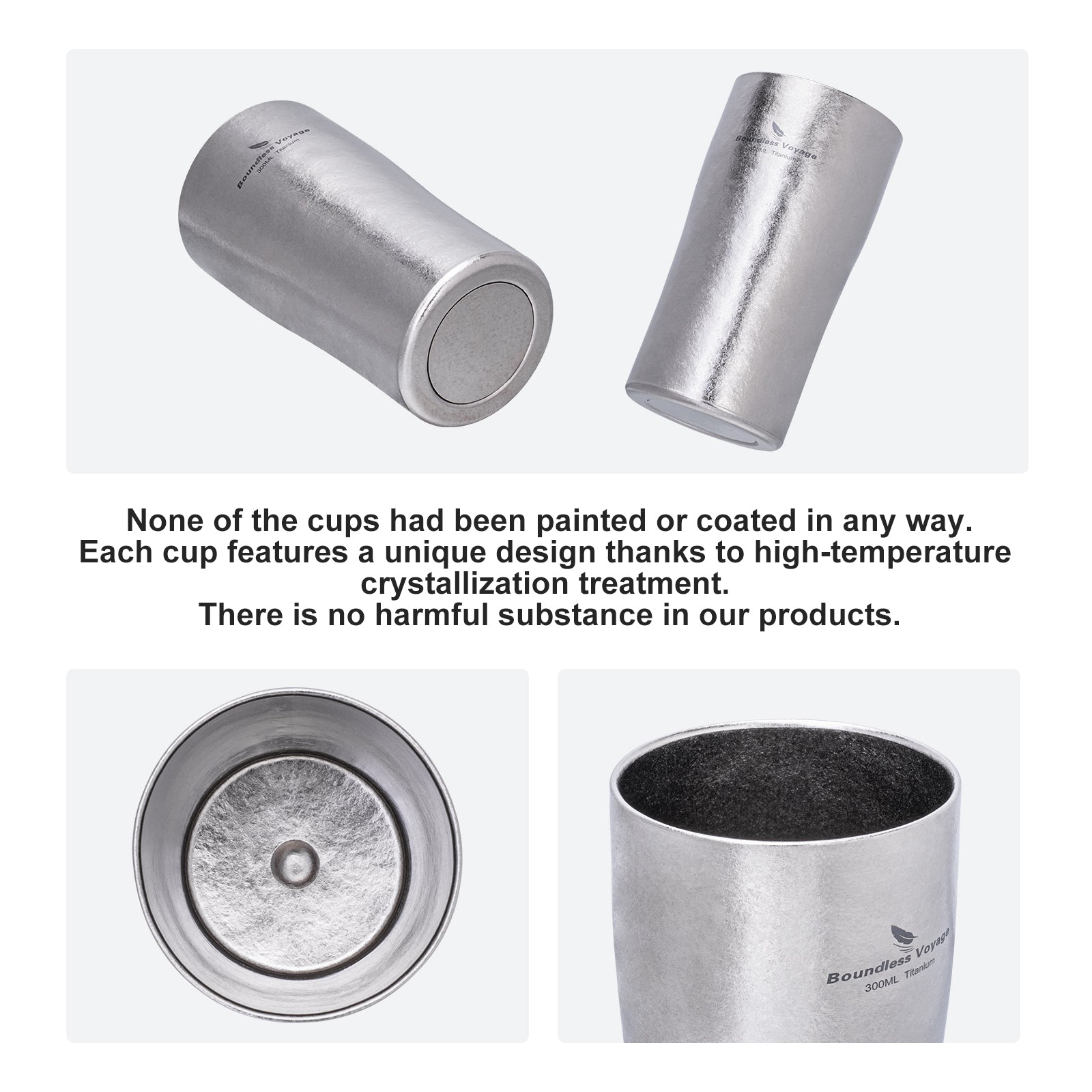 Boundless Voyage Titanium Double-Walled Beer Cup Ultralight Coffee Tea Juicy Cups for Home Outdoor Camping Picnic 300ml Crystallized Finish