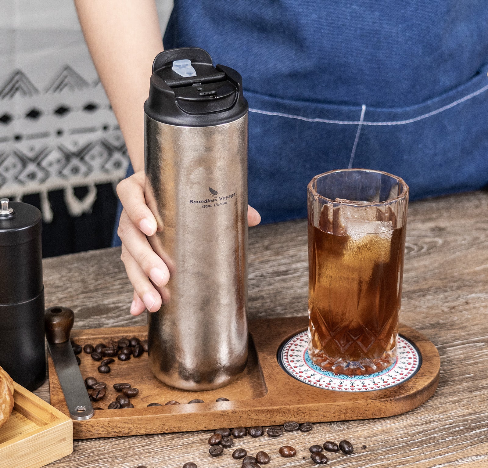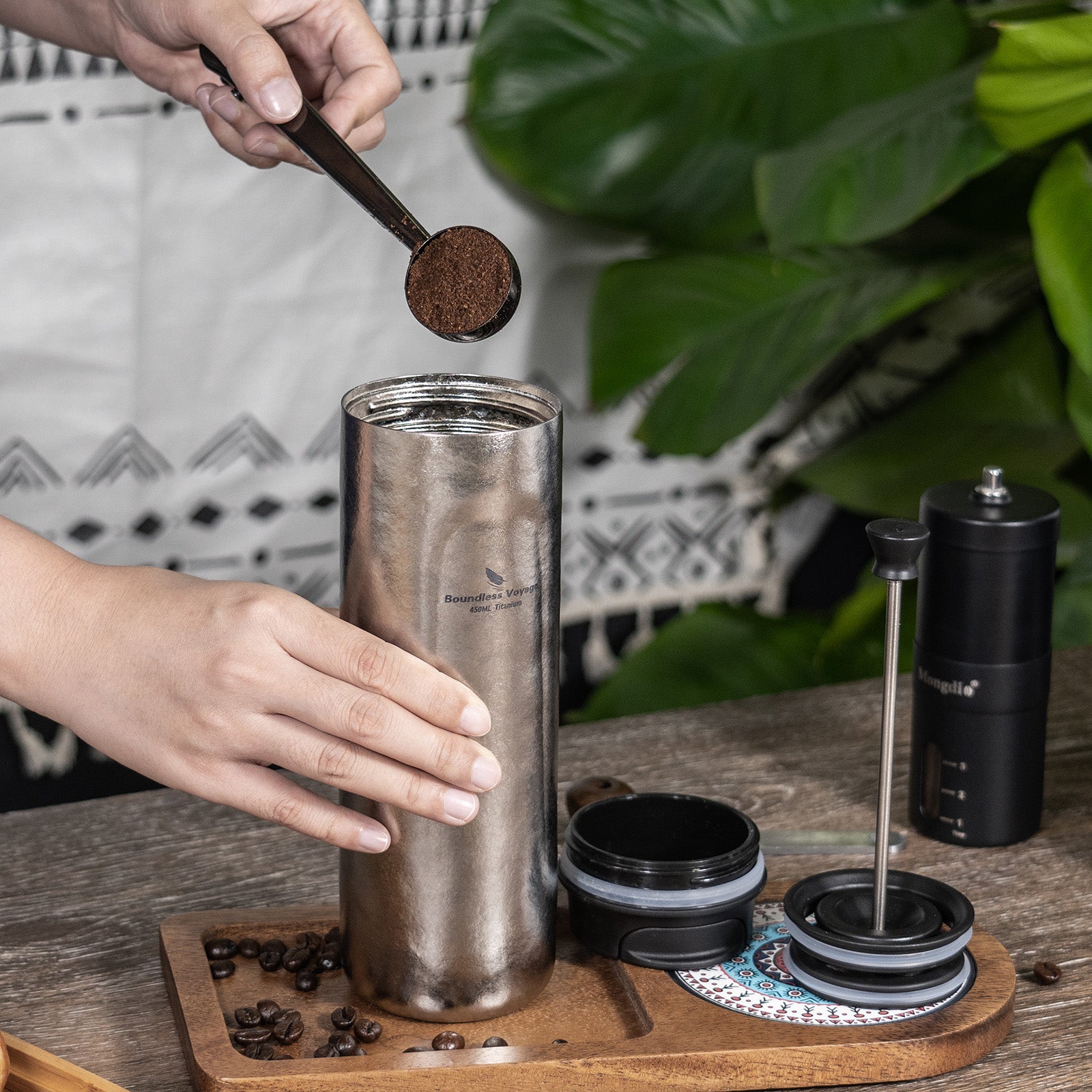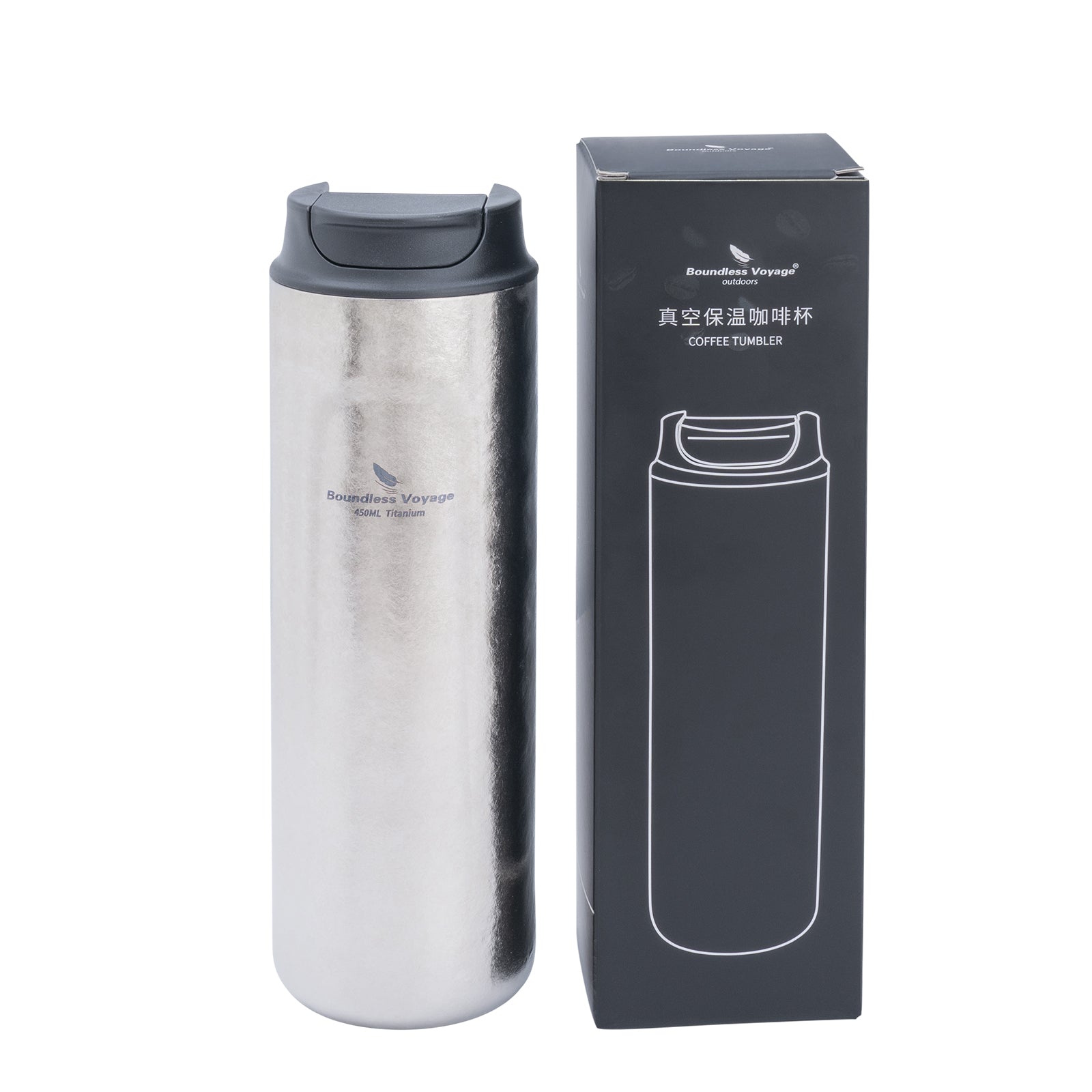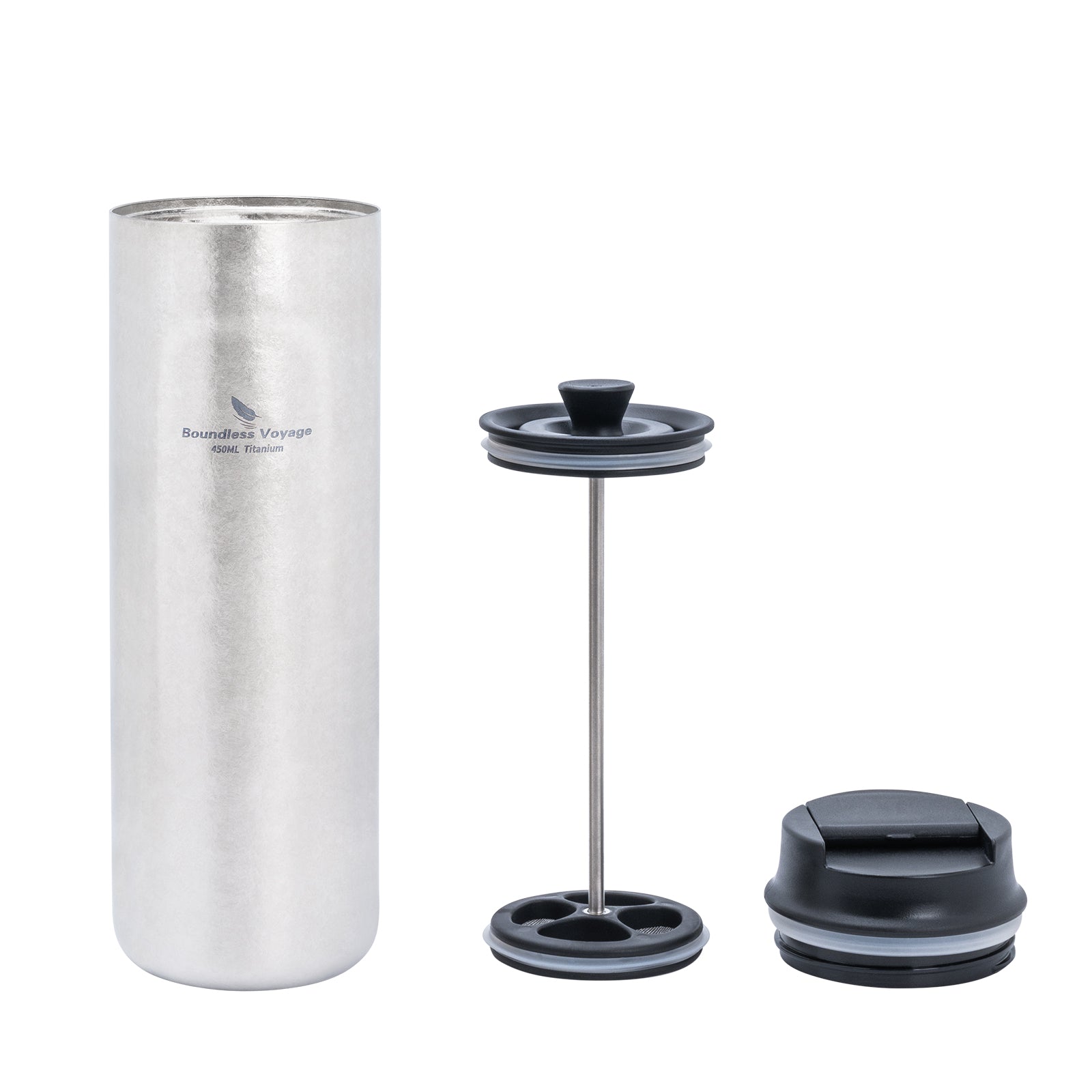 Boundless Voyage Titanium French Press Coffee Tumbler Thermos with Lid Double-Walled Insulated Water Bottle Mug 450ml