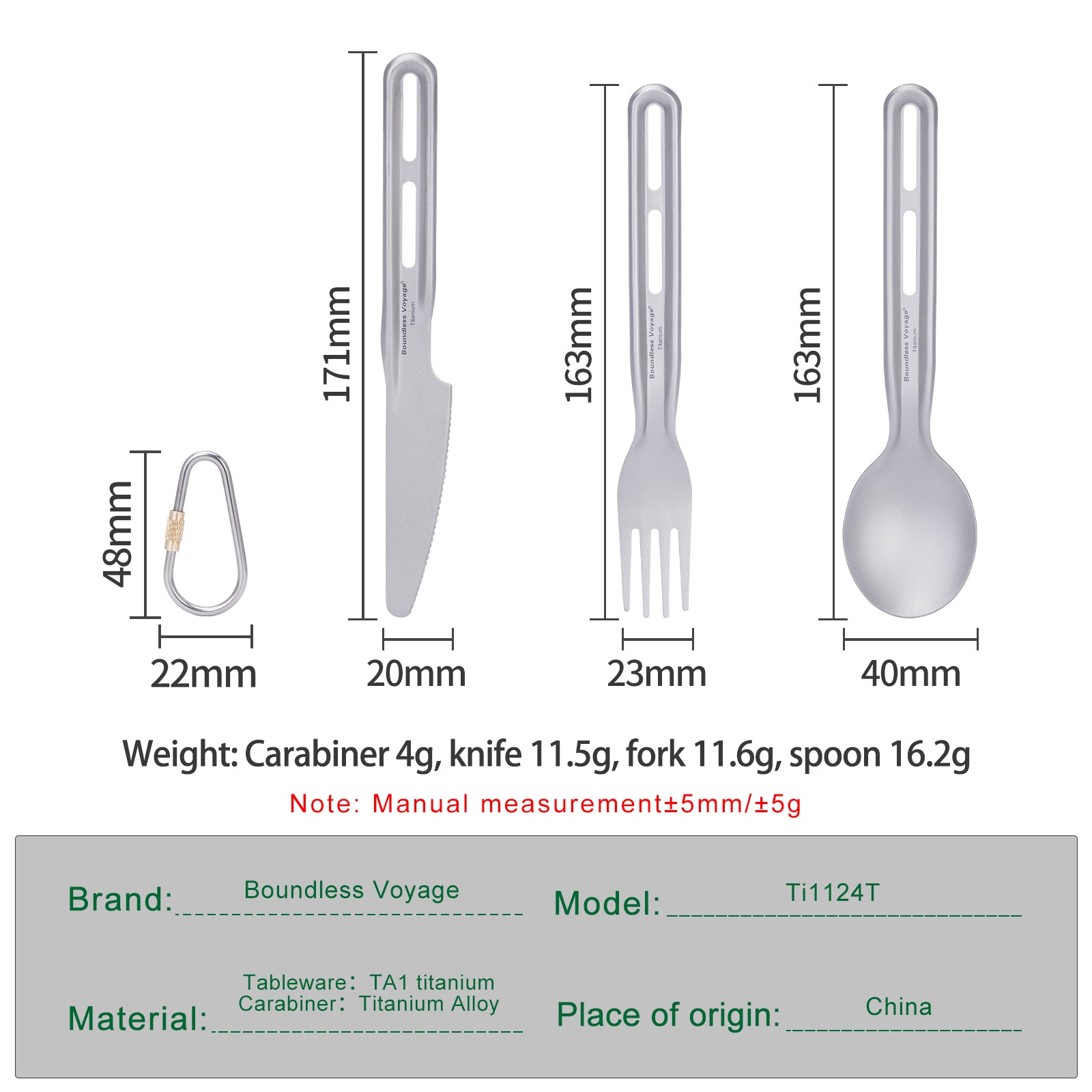 Boundless Voyage Titanium Knife Spoon Fork Chopsticks Set Outdoor Camping Ultralight Cutlery for Soup Meal Portable Tableware