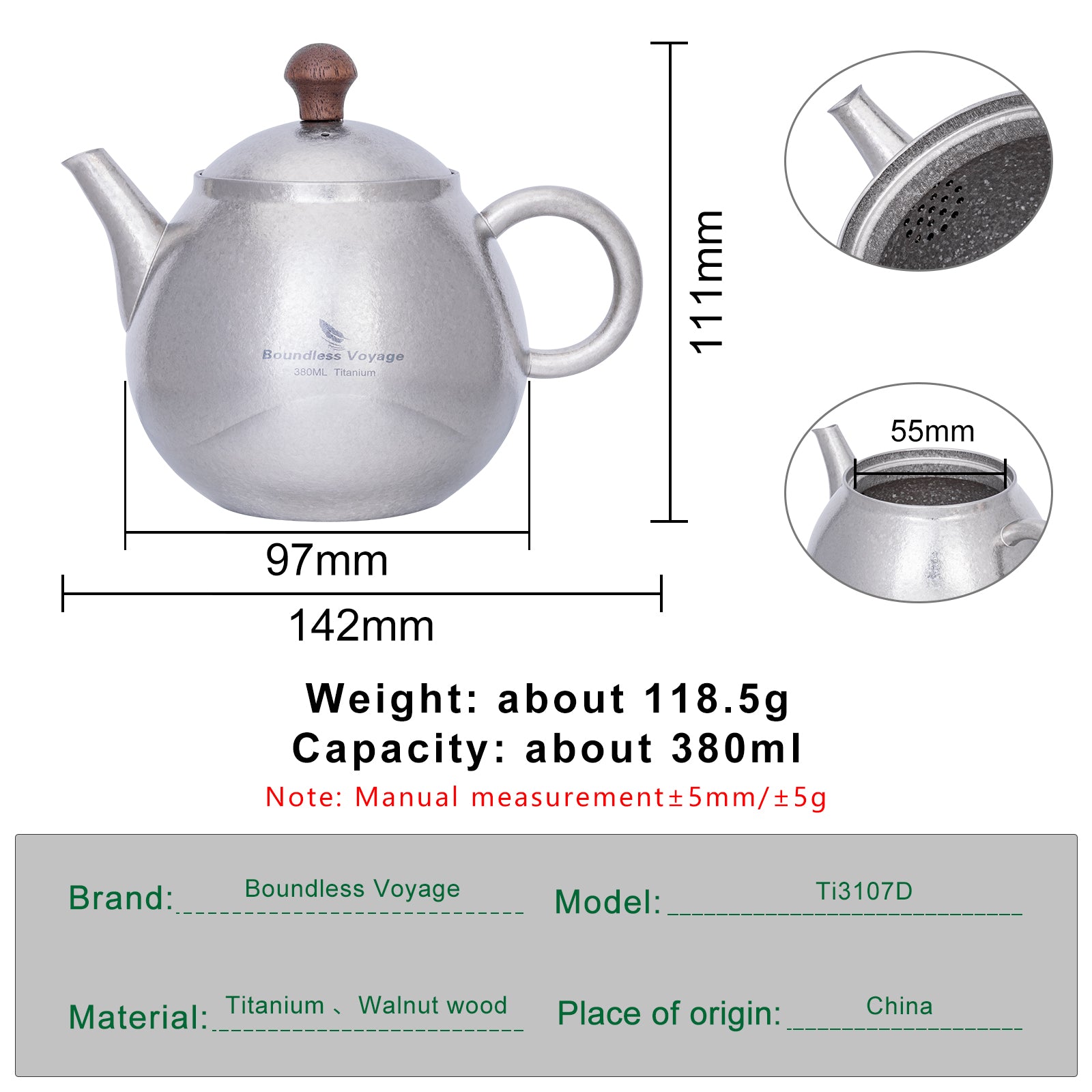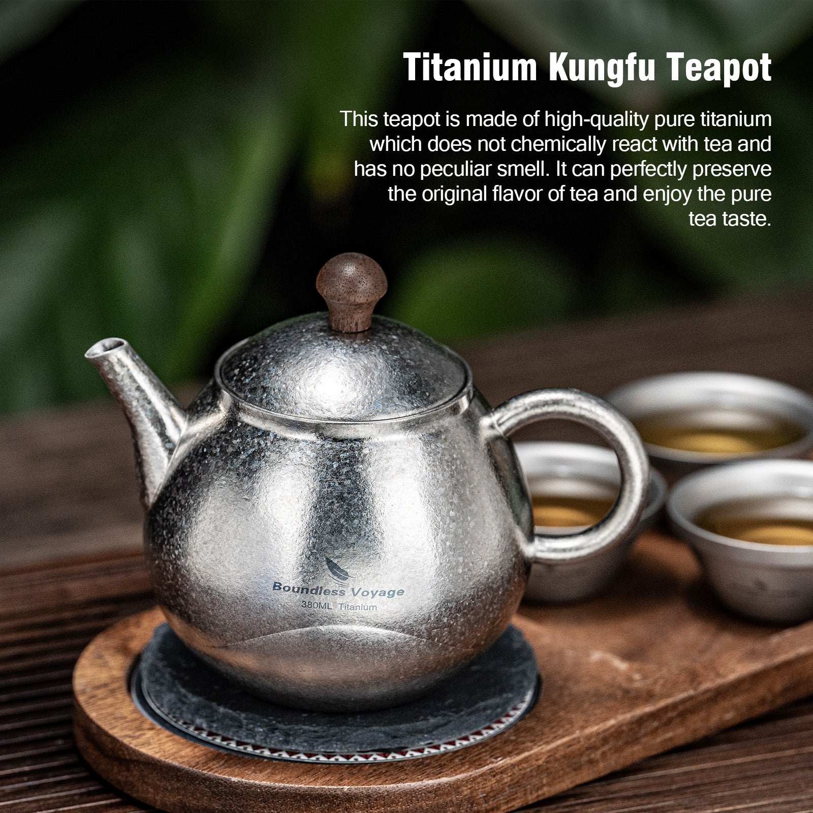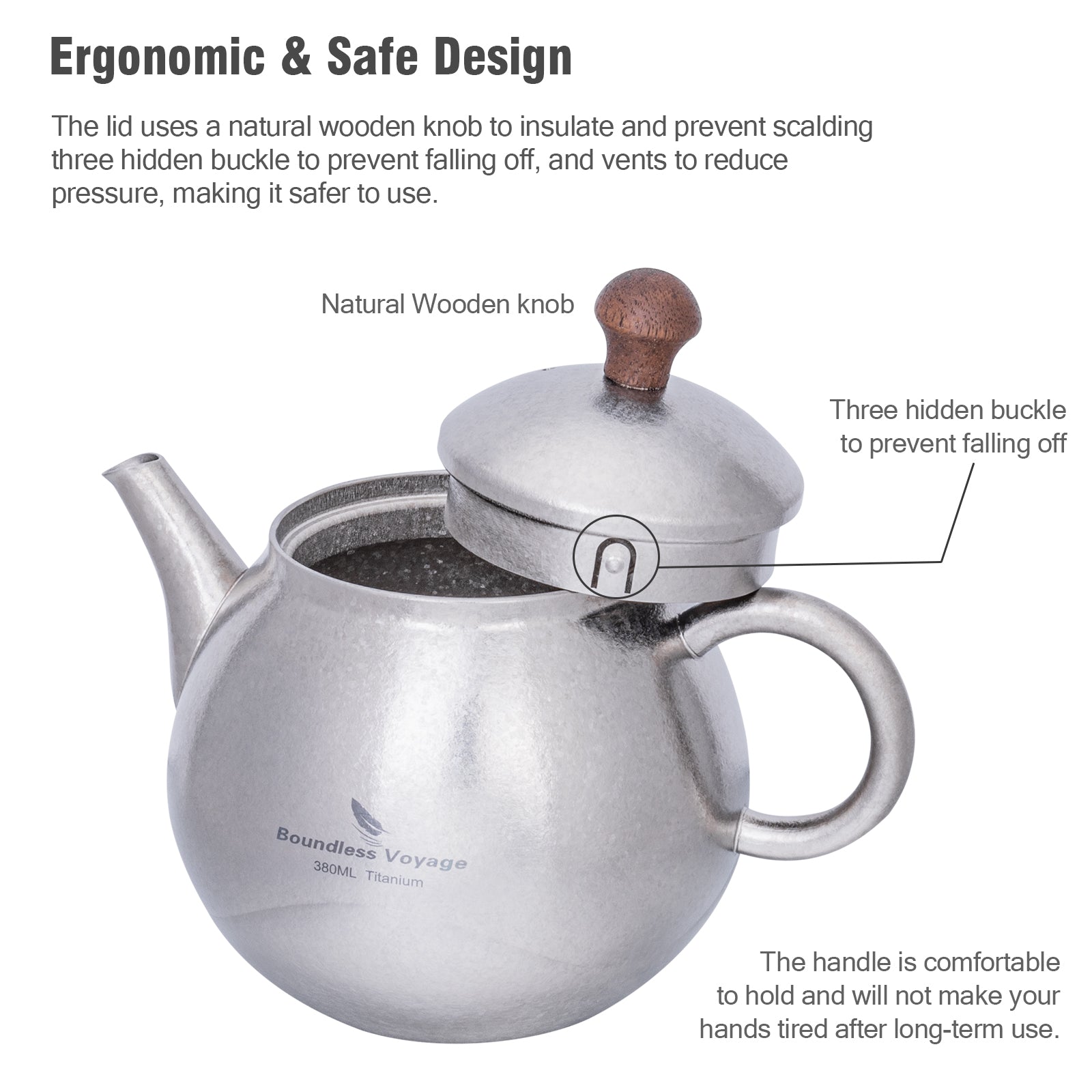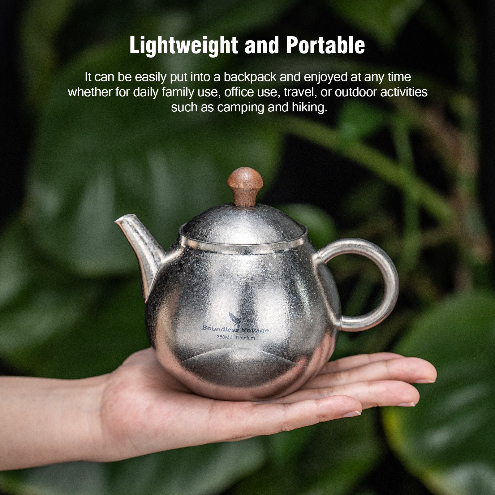 Boundless Voyage Titanium Kungfu Teapot with Lid and Handle Camping Coffee & Tea Pot for Outdoor Backpacking Hiking Teapot 380ml