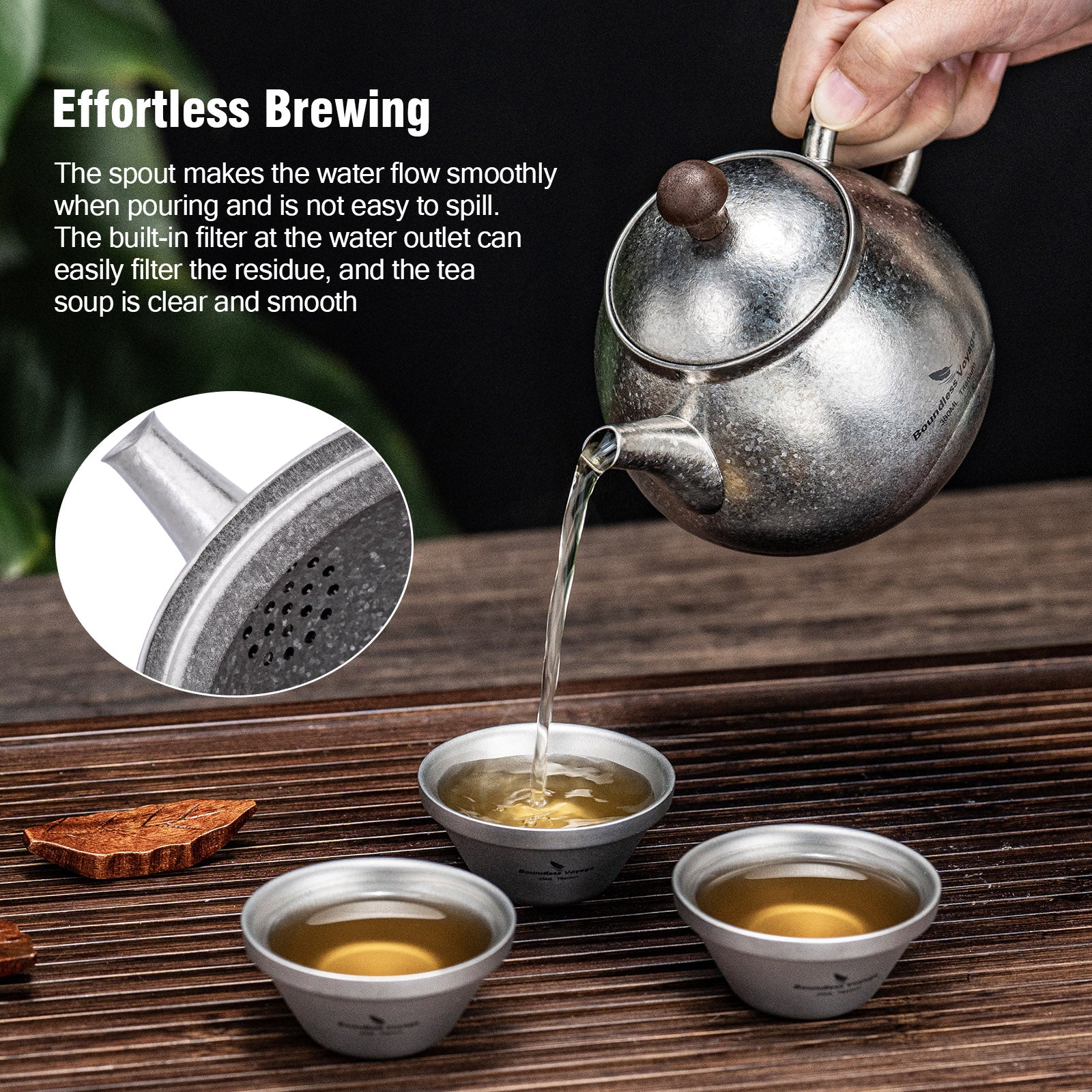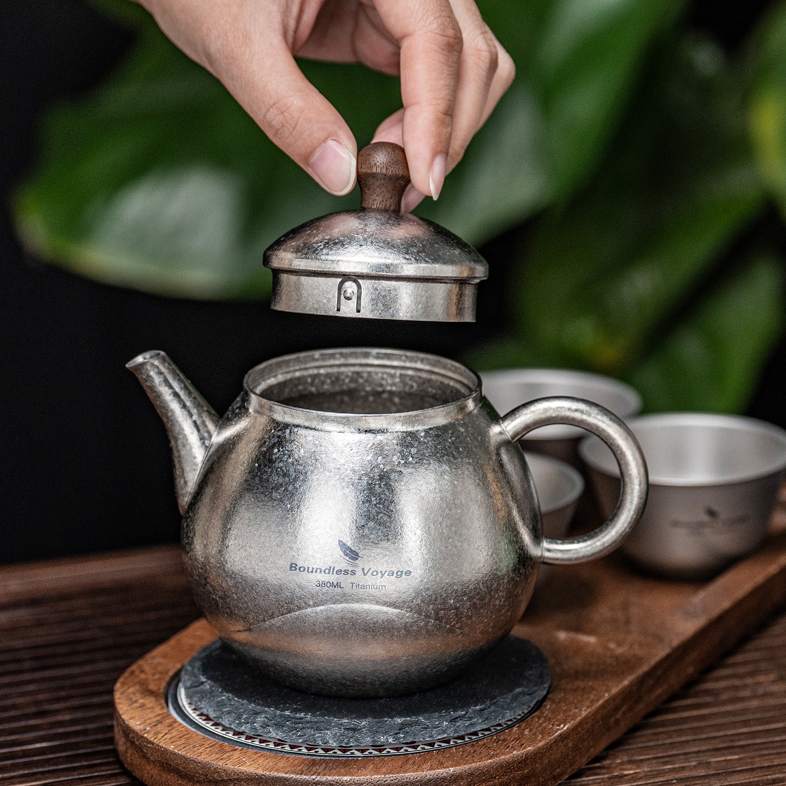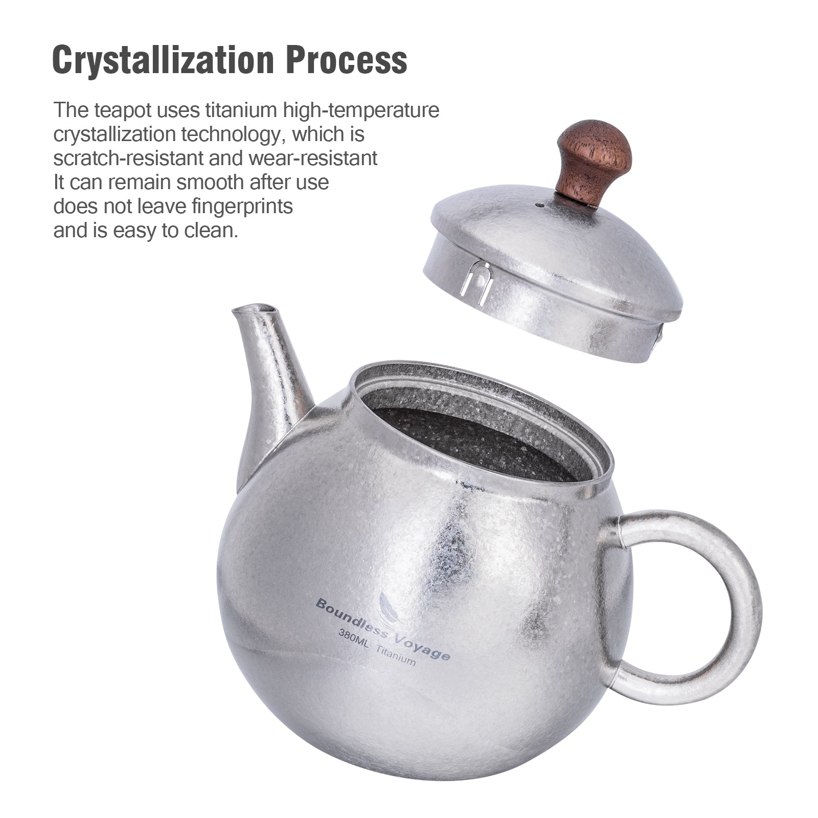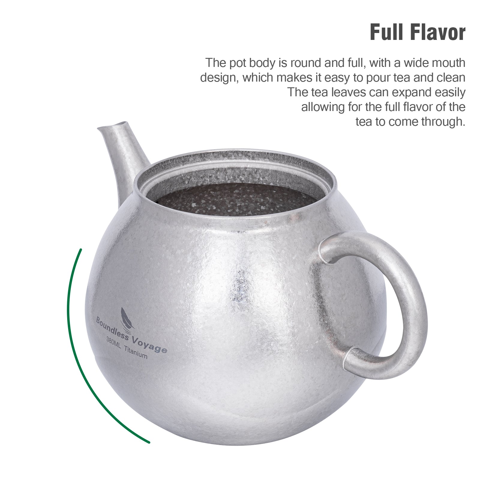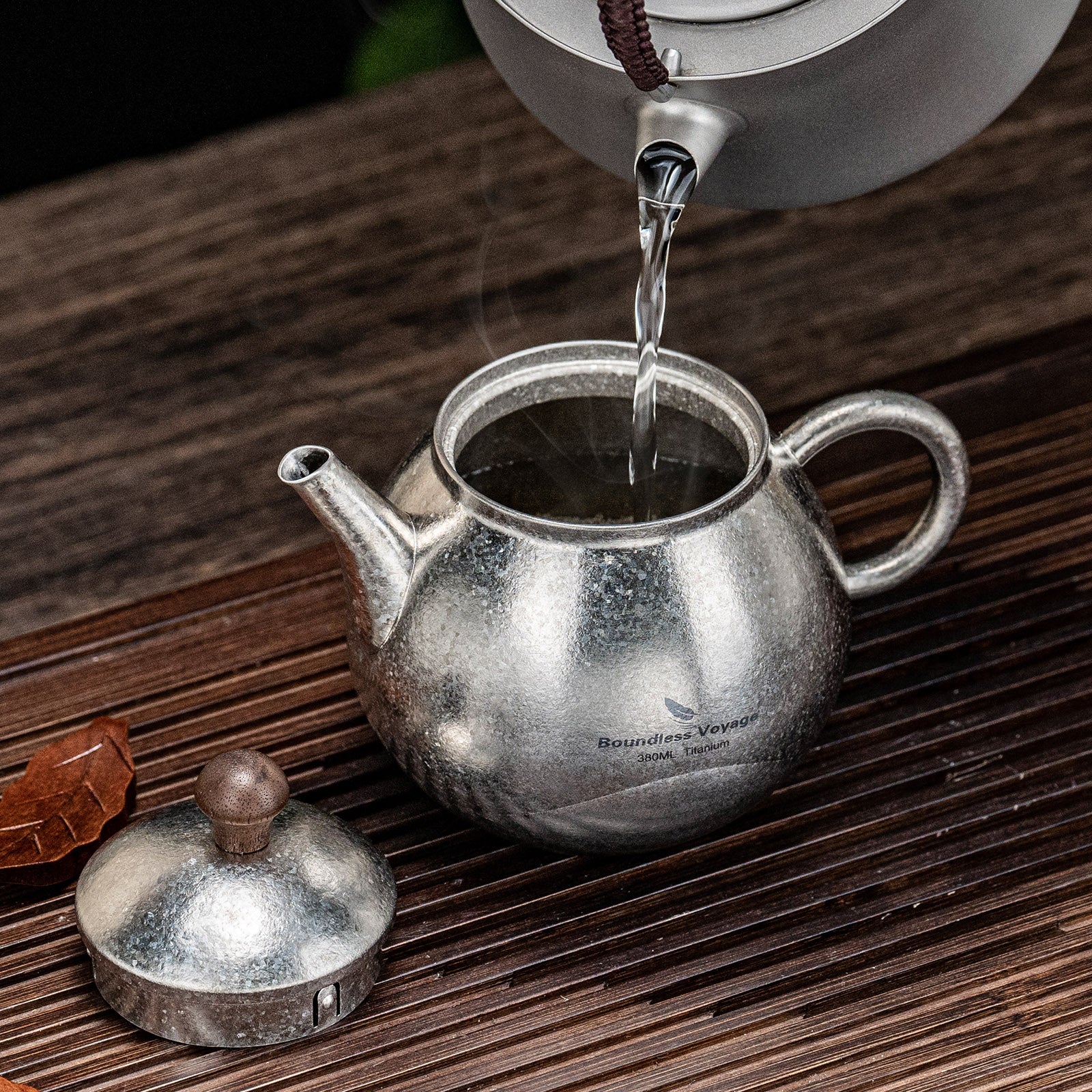 Boundless Voyage Titanium Kungfu Teapot with Lid and Handle Camping Coffee & Tea Pot for Outdoor Backpacking Hiking Teapot 380ml