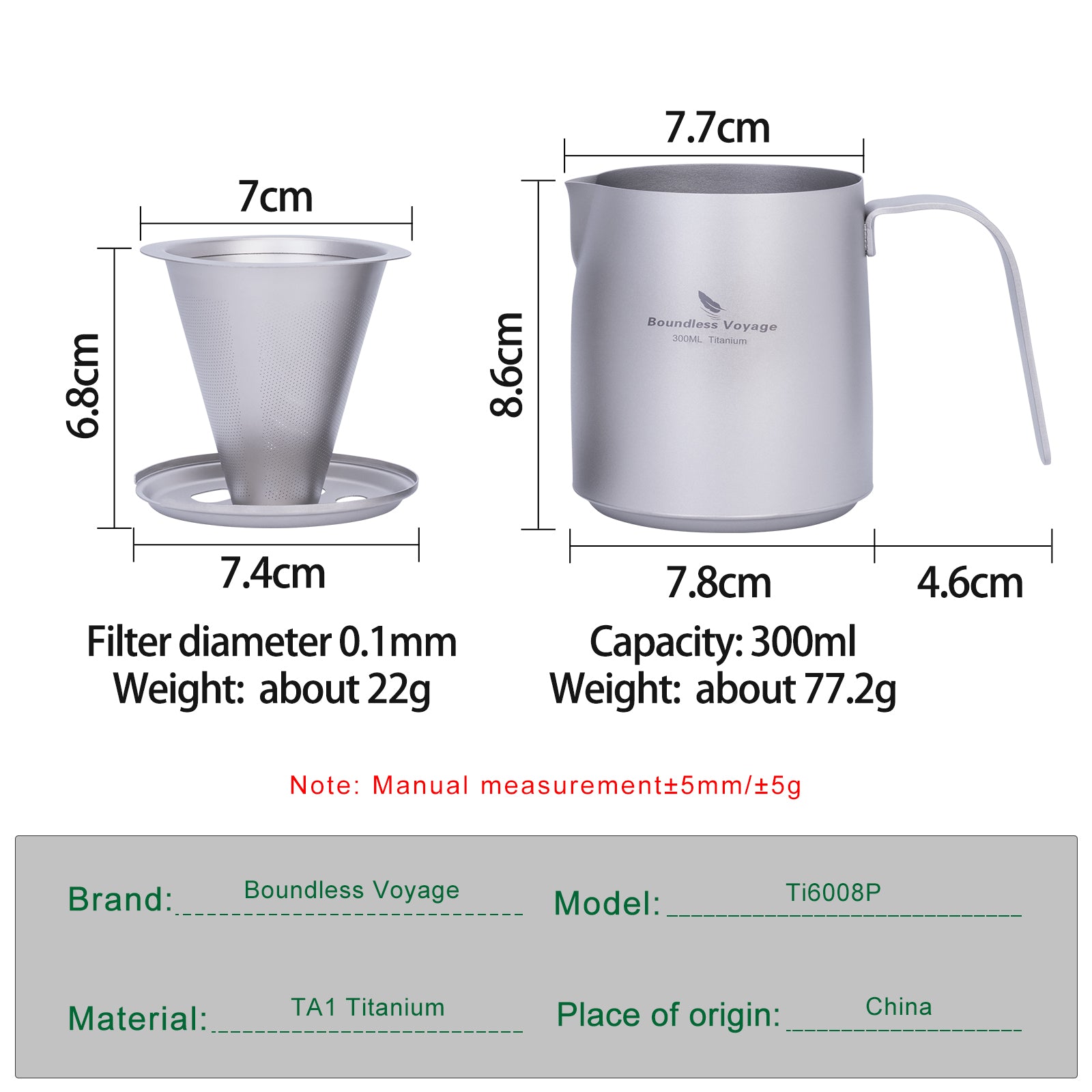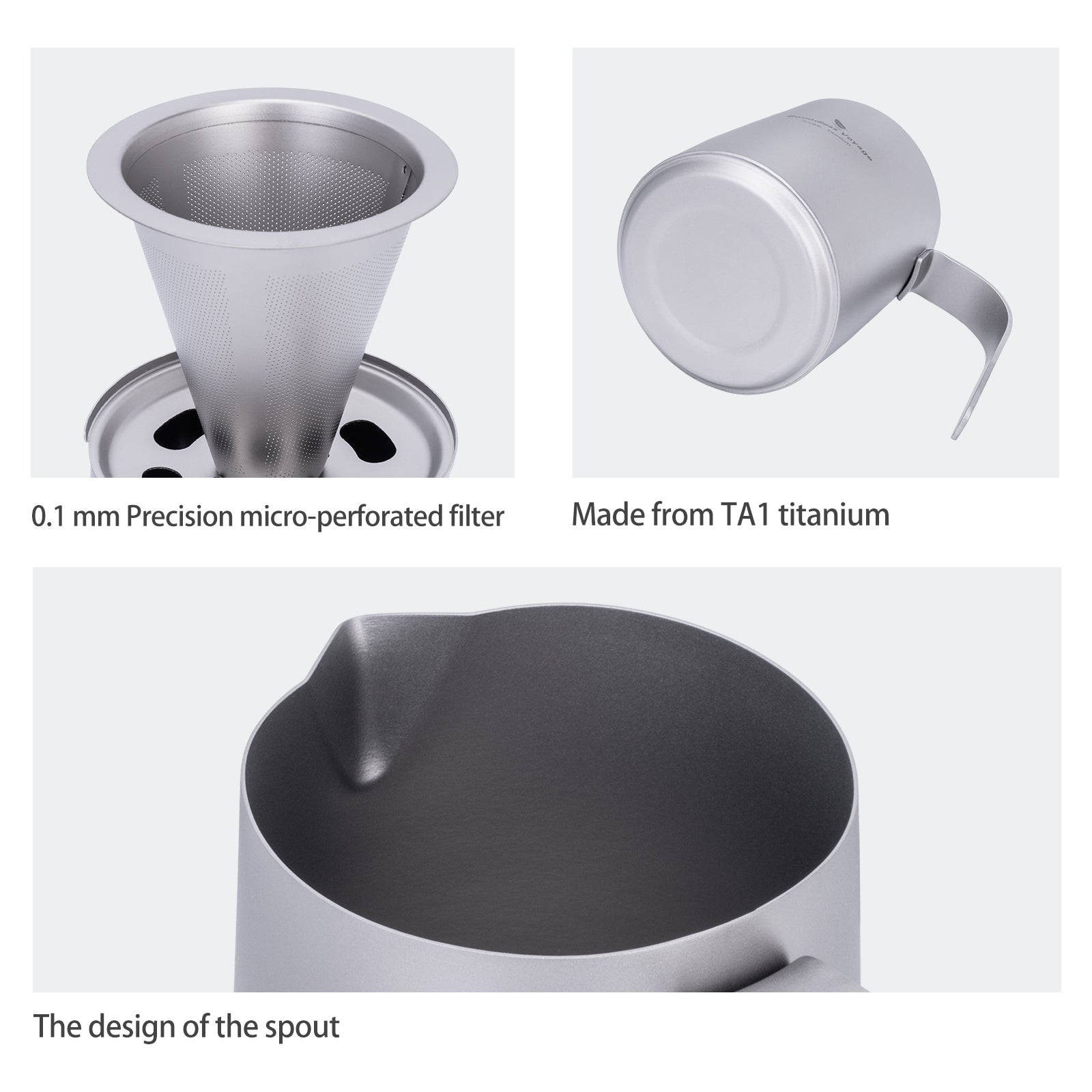 Boundless Voyage Titanium Portable Pour-over Coffee Set 300ml Coffee Mug with Detachable Dripper Outdoor Camping Coffee Maker