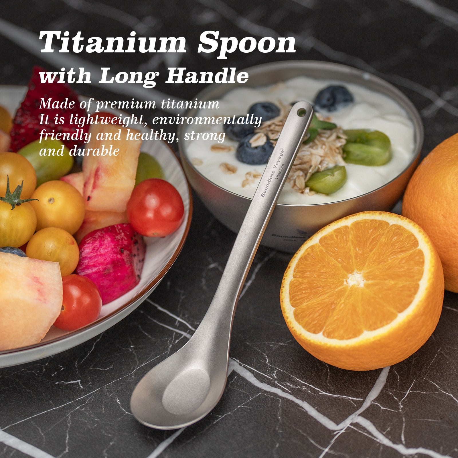 Boundless Voyage Titanium Spoon with Long Handle Outdoor Camping Ultralight Soup Spoon Cutlery Utensil