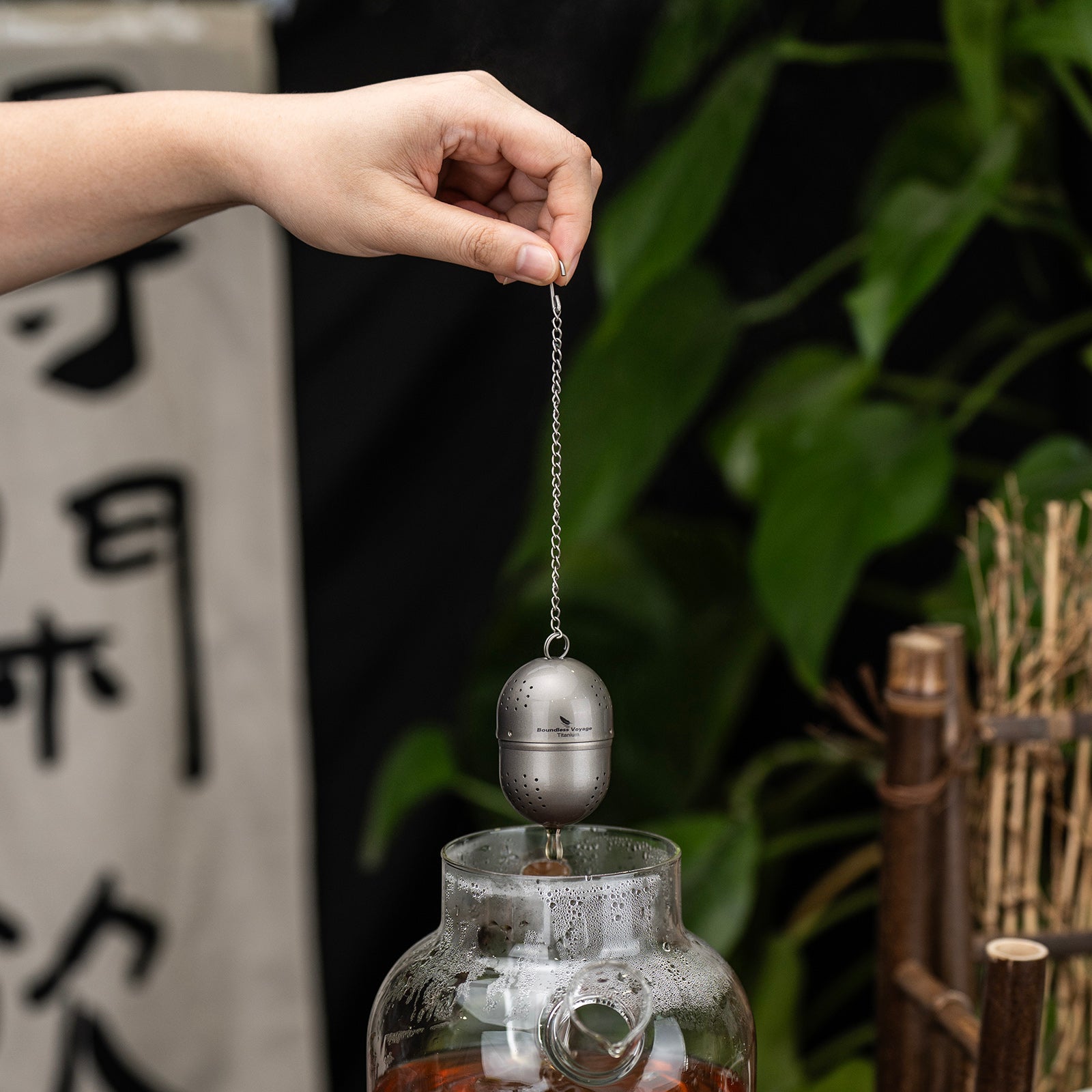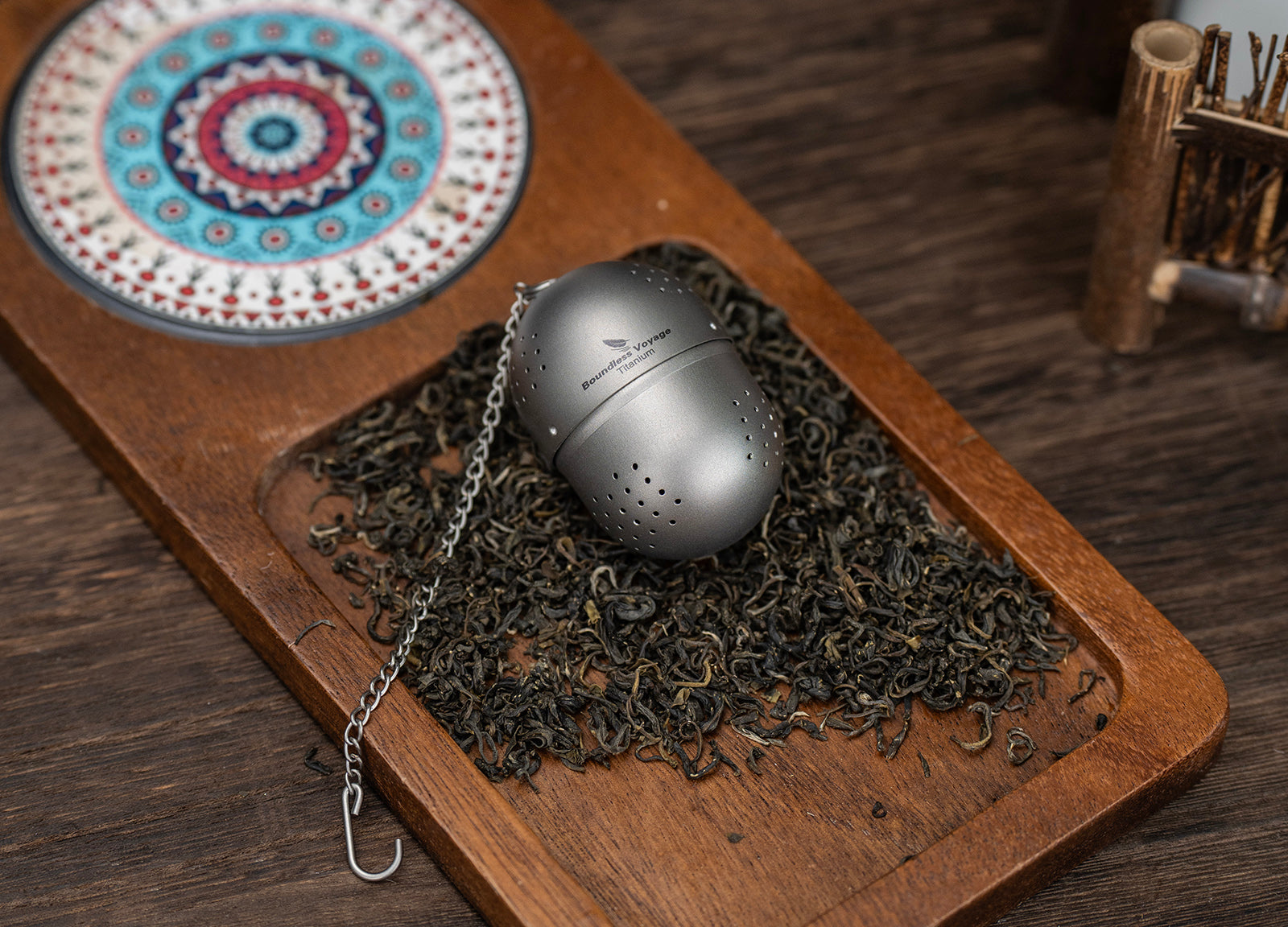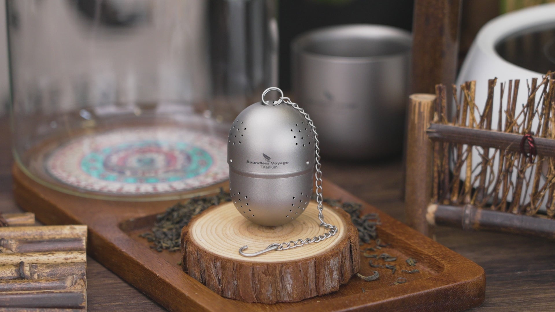 Boundless Voyage Titanium Tea Ball Infuser Ultralight Tea Strainer with Extended Chain for Loose Tea Spices