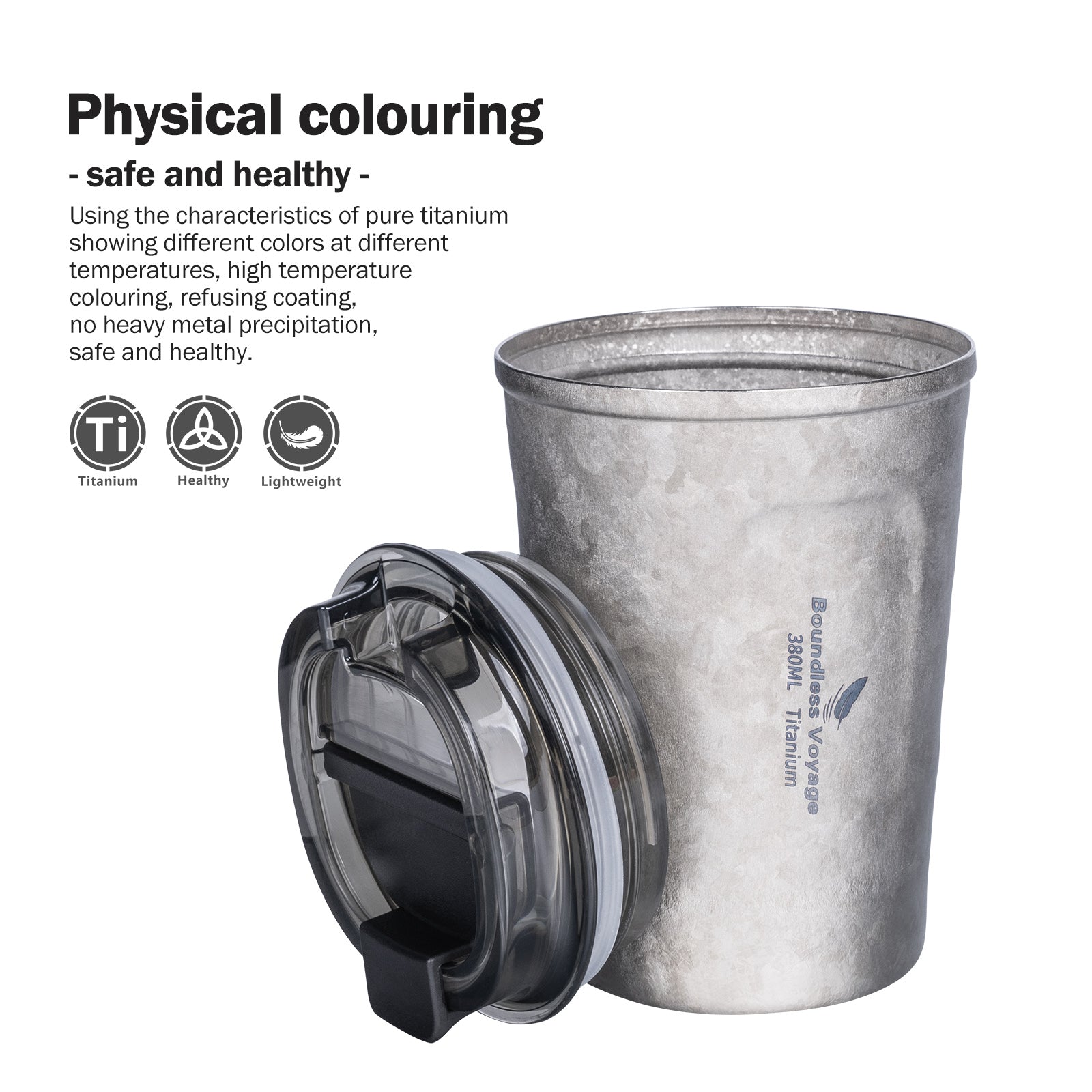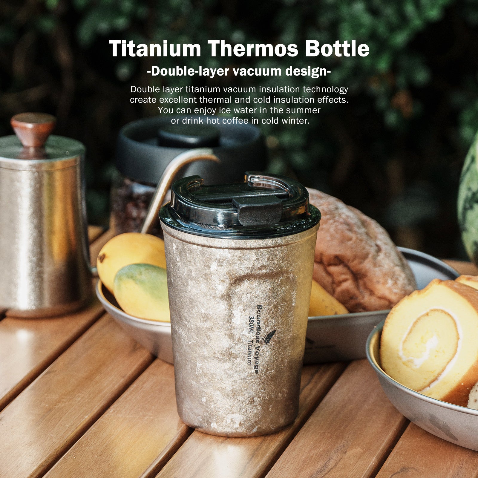 Boundless Voyage Titanium Thermos Bottle with Lid Double-Walled Insulated Water Mug 380ml
