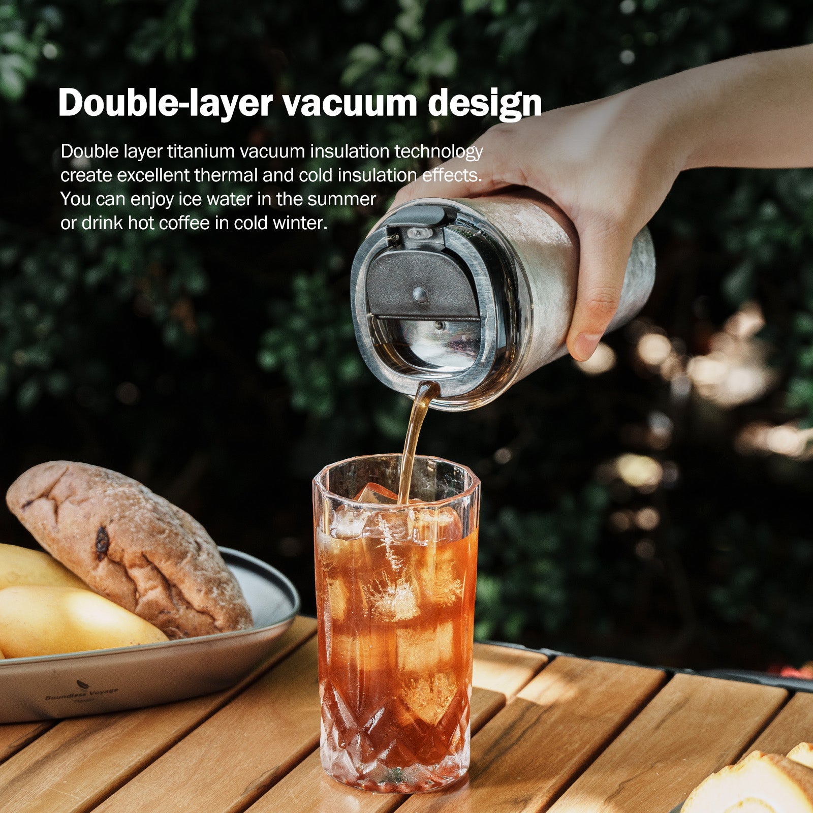 Double layer titanium vacuum insulation technology create excellent thermal and cold insulation effects. You can enjoy ice water in the summer or drink hot coffee in cold winter.