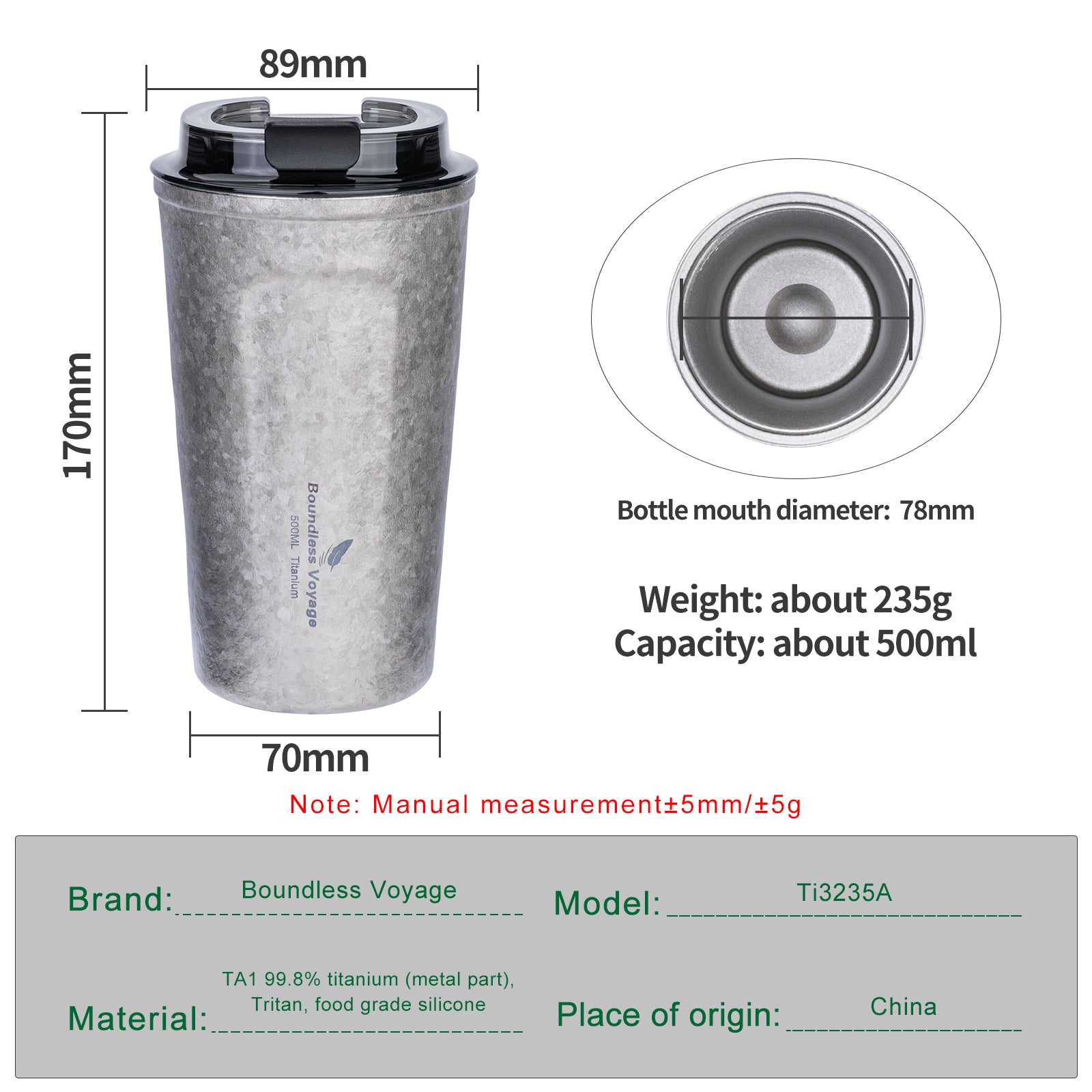 Boundless Voyage Titanium Thermos Bottle with Lid Double-Walled Insulated Water Mug 500ml