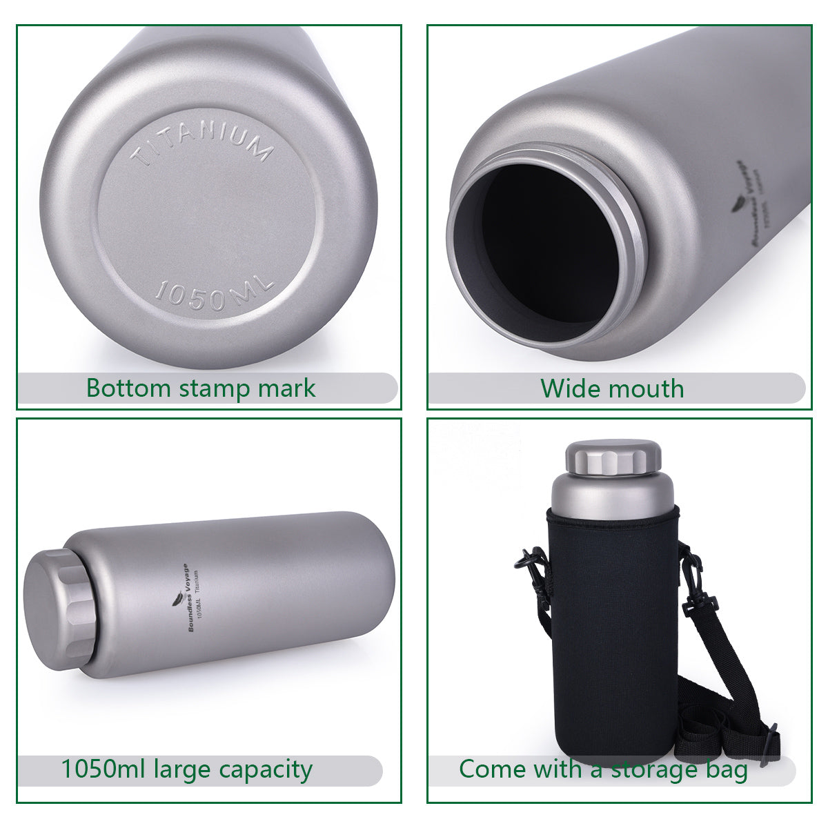 Boundless Voyage Titanium Water Bottle 1050ml For Outdoor Camping Hiking Lightweight Sport Bottle