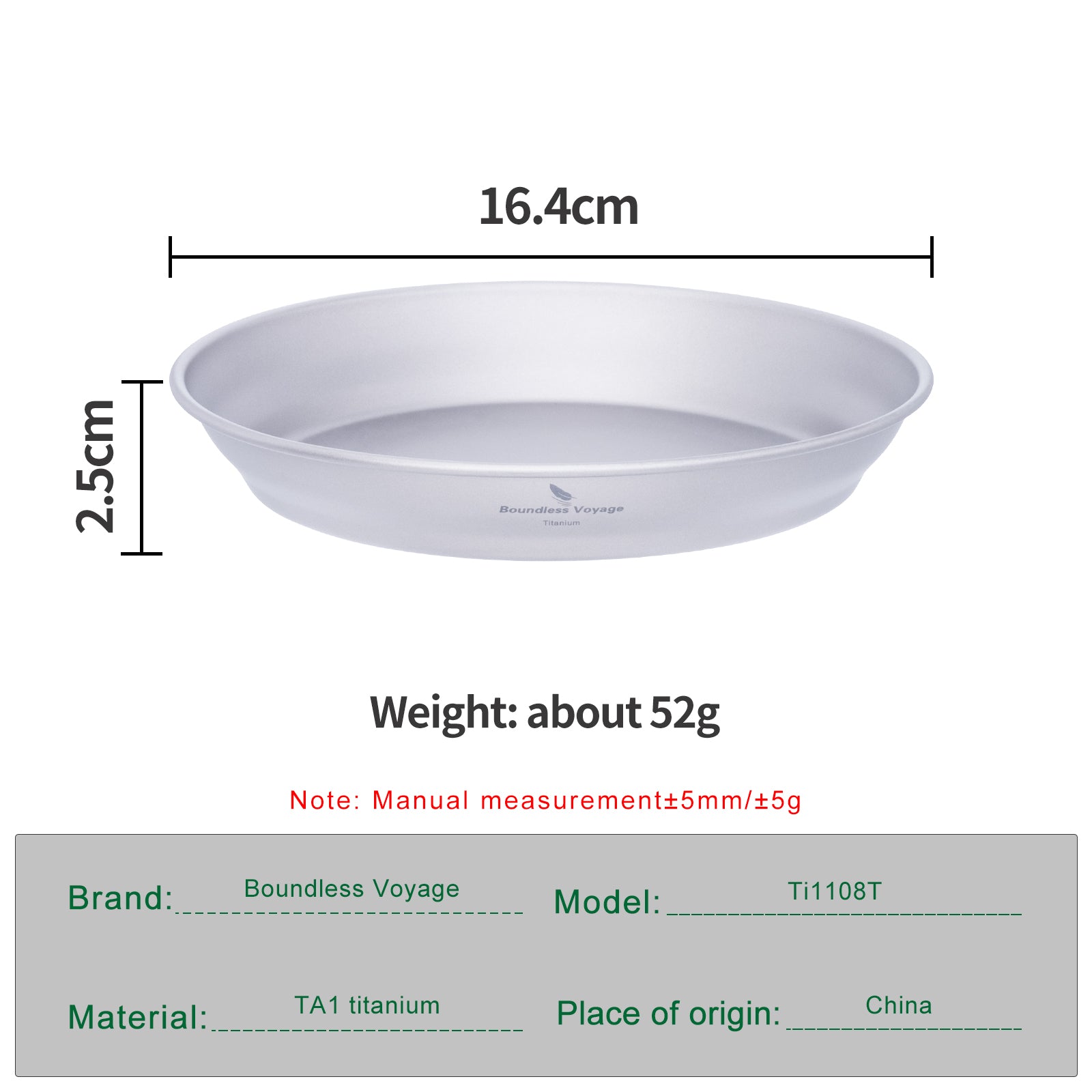 Boundless Voyage Ultralight Titanium Dish with Carry Bag Outdoor Camping Pan Plate Tableware Cookware