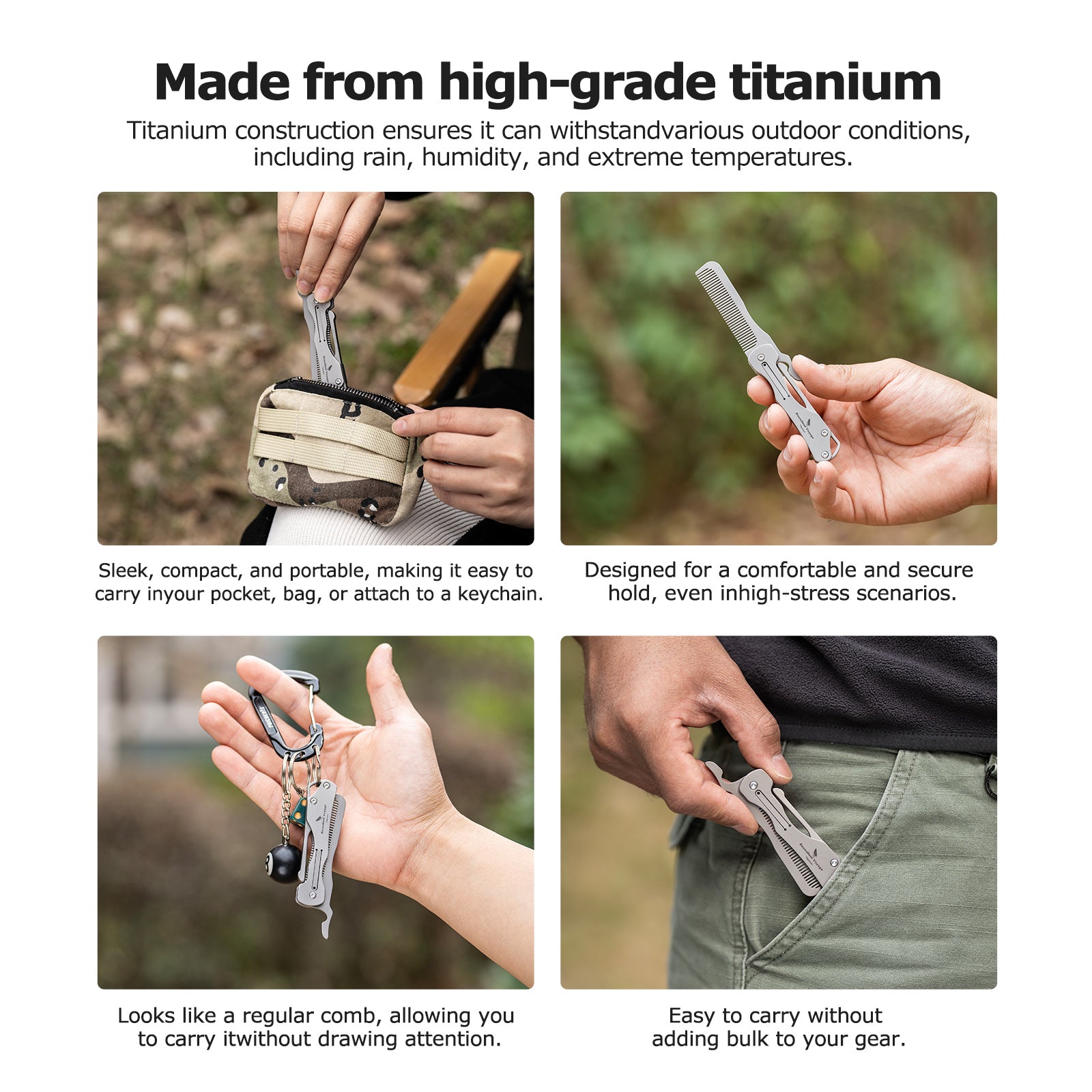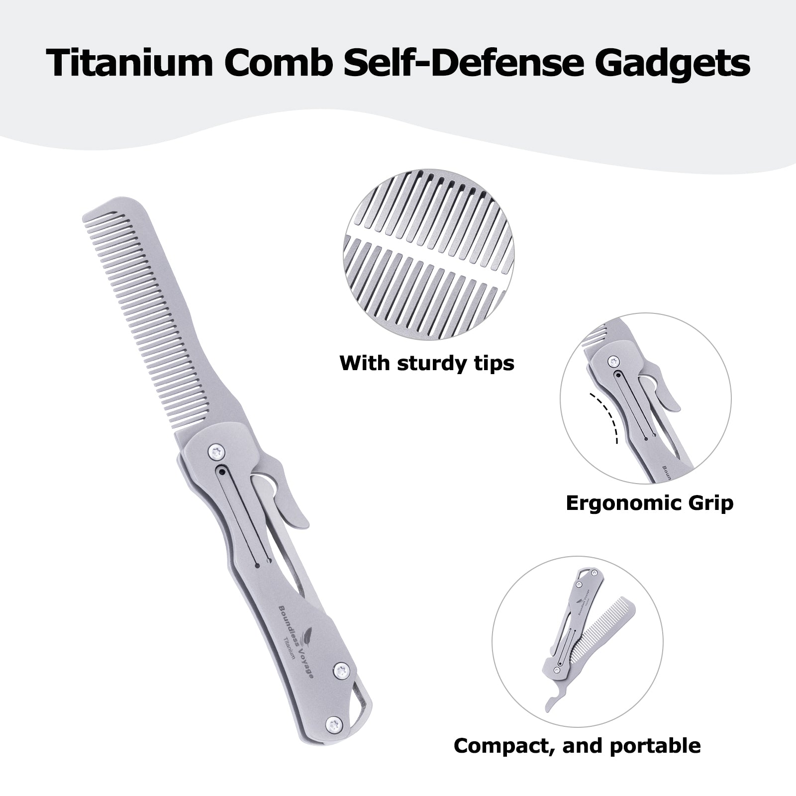 This titanium comb is not just a grooming tool but a reliable self-defense gadget that offers peace of mind in any situation. Its robust construction, combined with its dual-purpose design, makes it an essential item for anyone who values preparedness and practicality. Whether you're hiking, traveling, or just going about your daily routine, this comb ensures you're always ready, no matter what.