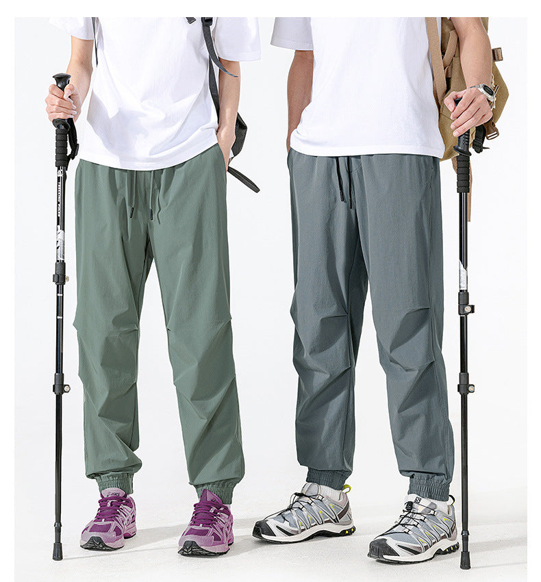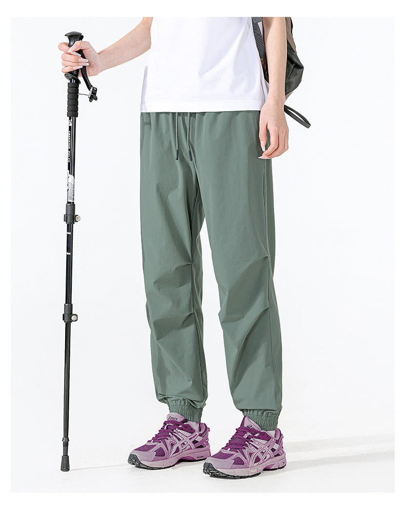 Unisex Summer Quick-Dry Joggers – Loose Fit, Long Pants for Outdoor Hiking & Casual Wear, Drawstring Cuffed Ankles