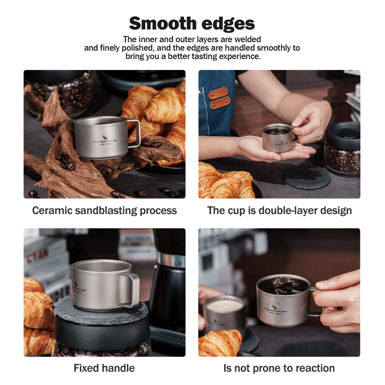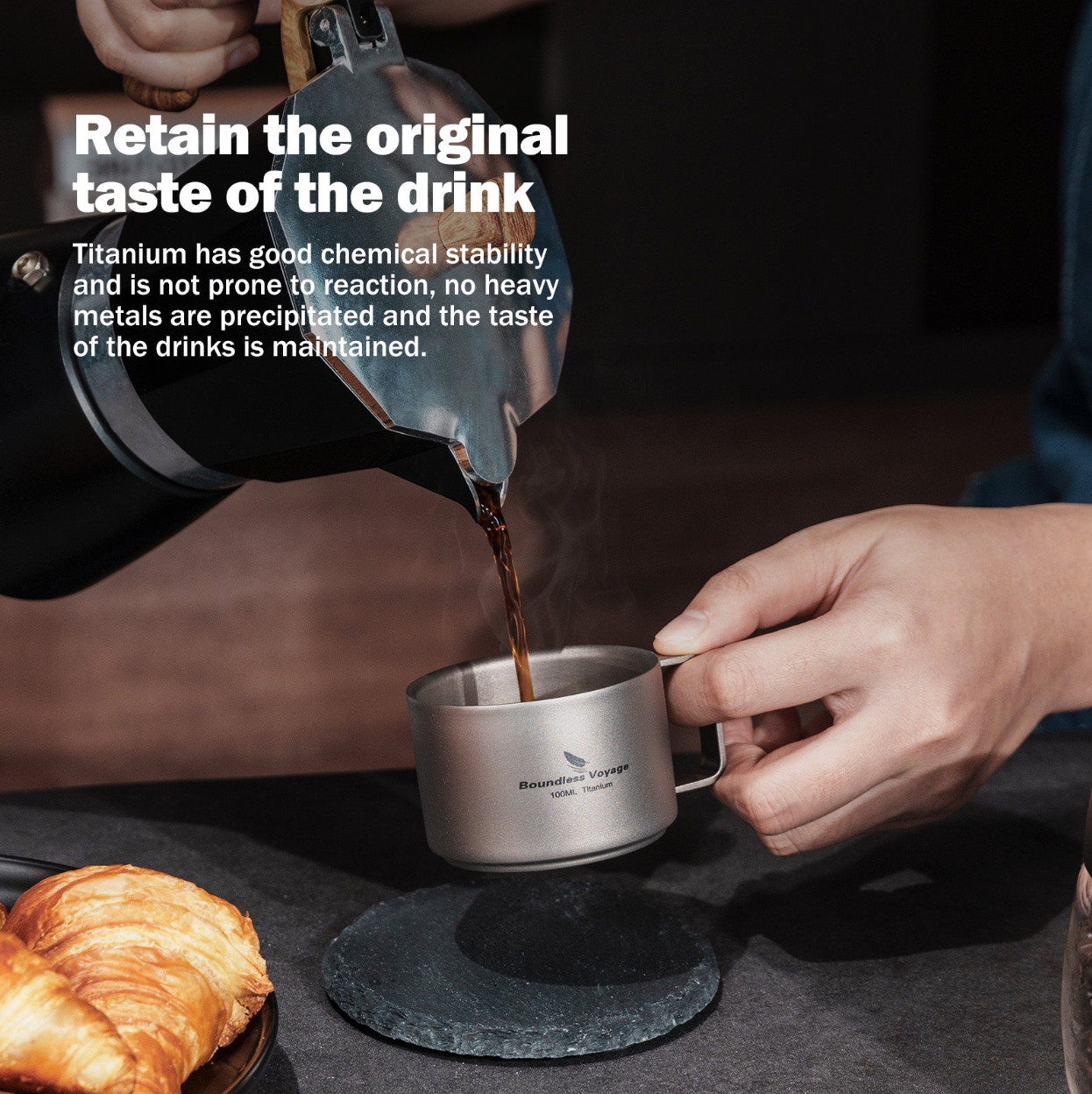 Boundless Voyage Titanium Double-Walled Coffee Cup 100ml – Ultralight Insulated Espresso Mug for Camping, Hiking & Home Use