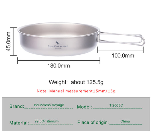Boundless Voyage Titanium Bowl Pan Set Outdoor Camping Picnic Ultralight Cookware Dish Frying Pan Mess Kit 3pcs