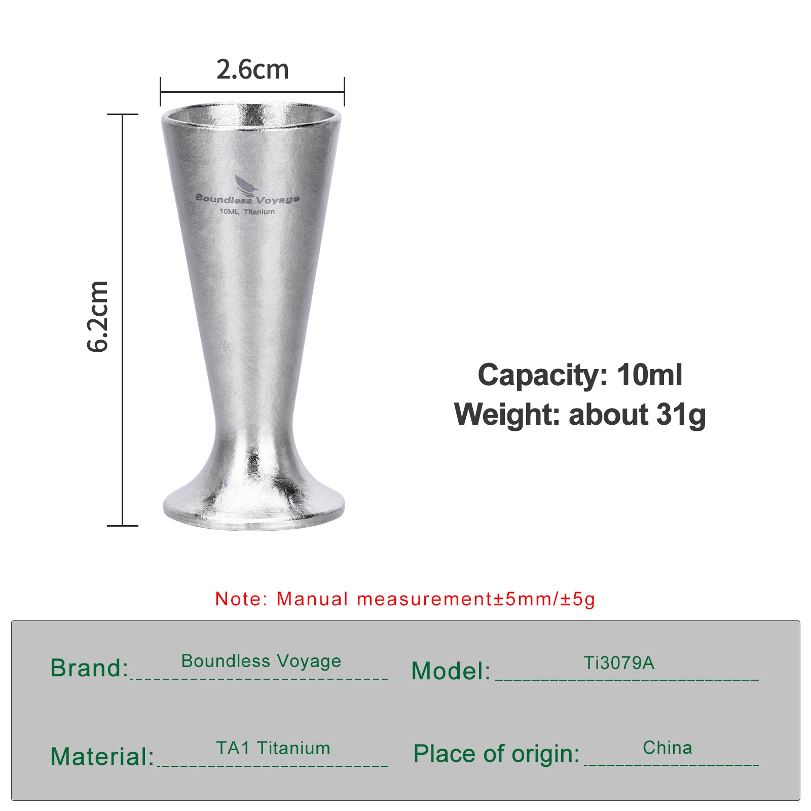 Boundless Voyage Titanium Mini Shot Glass 10ml Ultralight Whiskey Tequila Cup for Camping Travel Outdoor Use