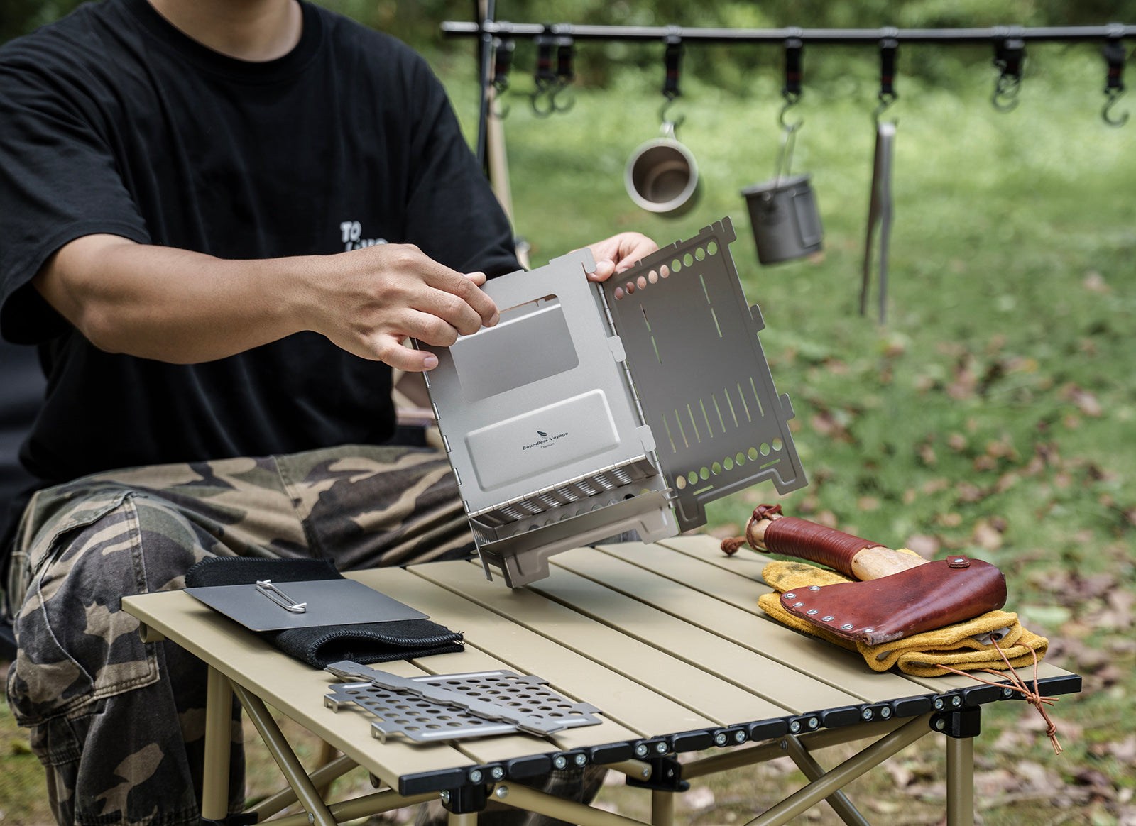 Boundless Voyage Titanium Wood Stove Ultralight Camping Charcoal Burner for Backpacking Hiking & Outdoor Cooking