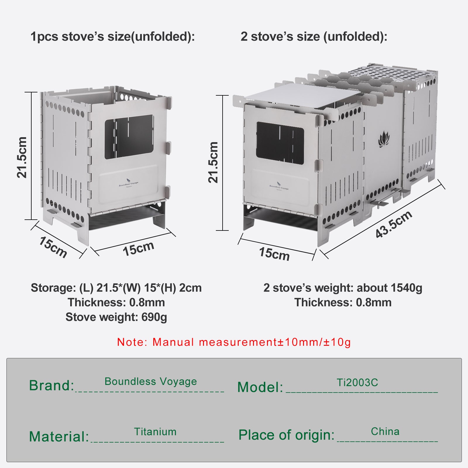 2 stove’s size (unfolded): (L) 43.5*(W) 15*(H) 21.5cm